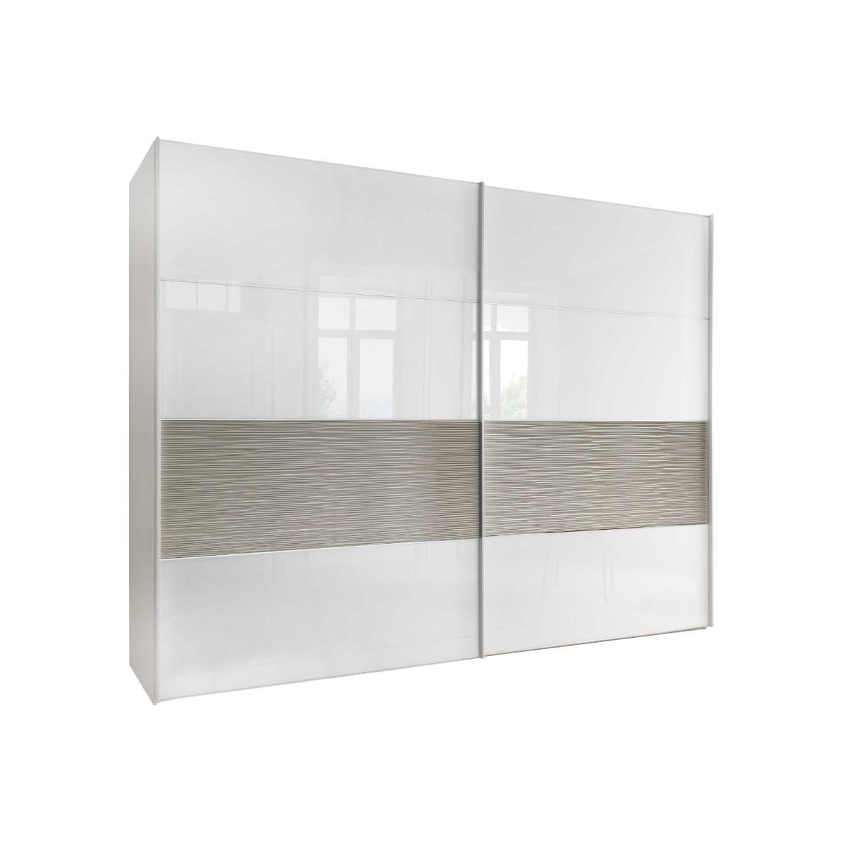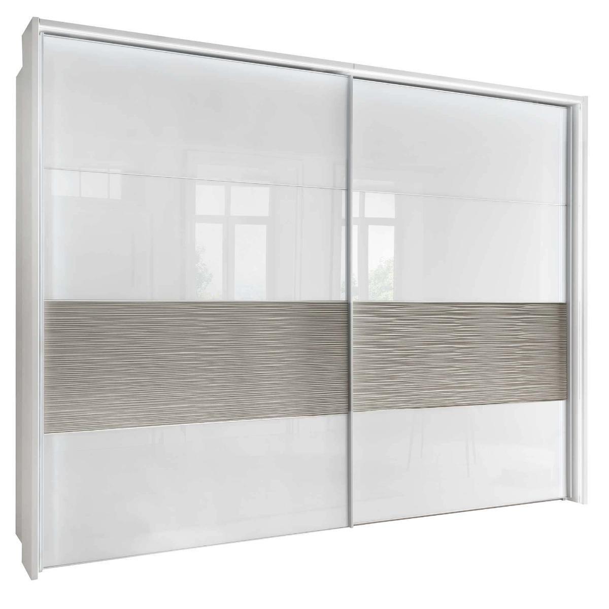 Riga 2 Door Sliding Wardrobe, White Glass and Structure Pebble