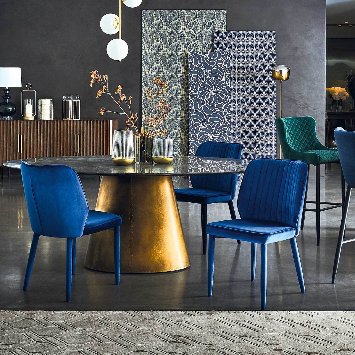 An elegant piece with vintage charm, the Rigg velvet dining chair features a comfortable, foam-filled seat with glamorous piped edging and a beautifully fluted backrest. Soft to the touch, it is fully upholstered in either blue, navy or grey velvet – right down to the legs. Whether you’re looking for a dining chair to stand out against a simpler scheme or one that will complement a luxurious interior, Rigg fits the bill perfectly. Mix and match your colours for a fun and contemporary look.