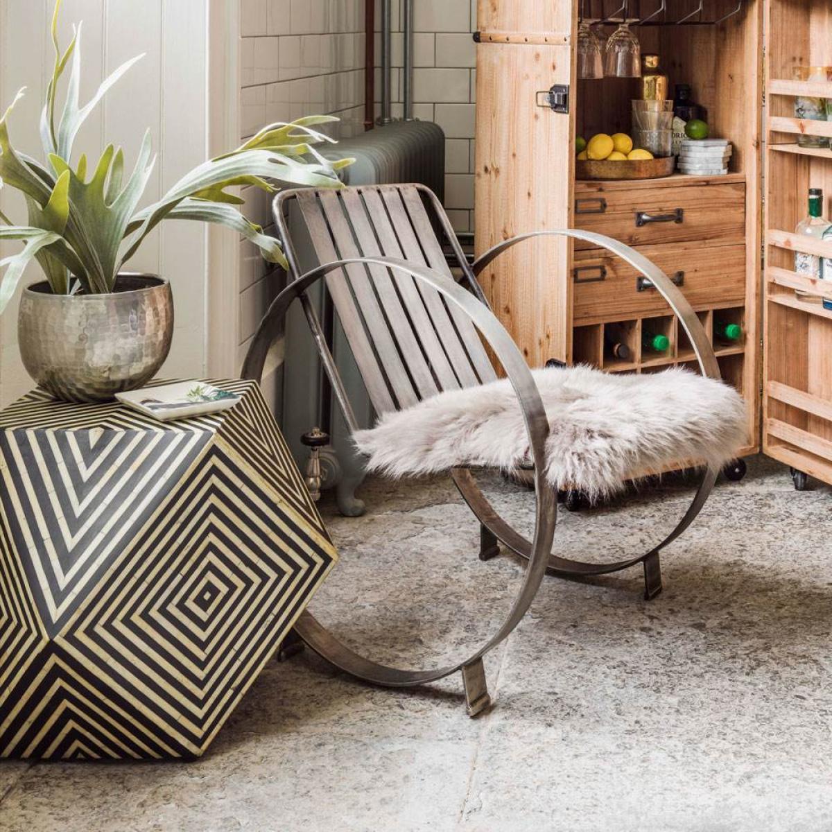 I love this piece for its stunning bone inlay detail, which adds a touch of luxury and craft to any room. It works particularly well in eclectic or bohemian interiors, where its intricate pattern can stand out, but it’s versatile enough for more pared-back, modern spaces as well. For styling, consider placing it beside a statement armchair or in a corner with some beautiful accessories on top, like a decorative tray or a small vase with fresh flowers, to highlight its craftsmanship. Its neutral tones make it easy to pair with various colour schemes, and it can also serve as a practical surface for a lamp, books, or a drink, making it both beautiful and functional.