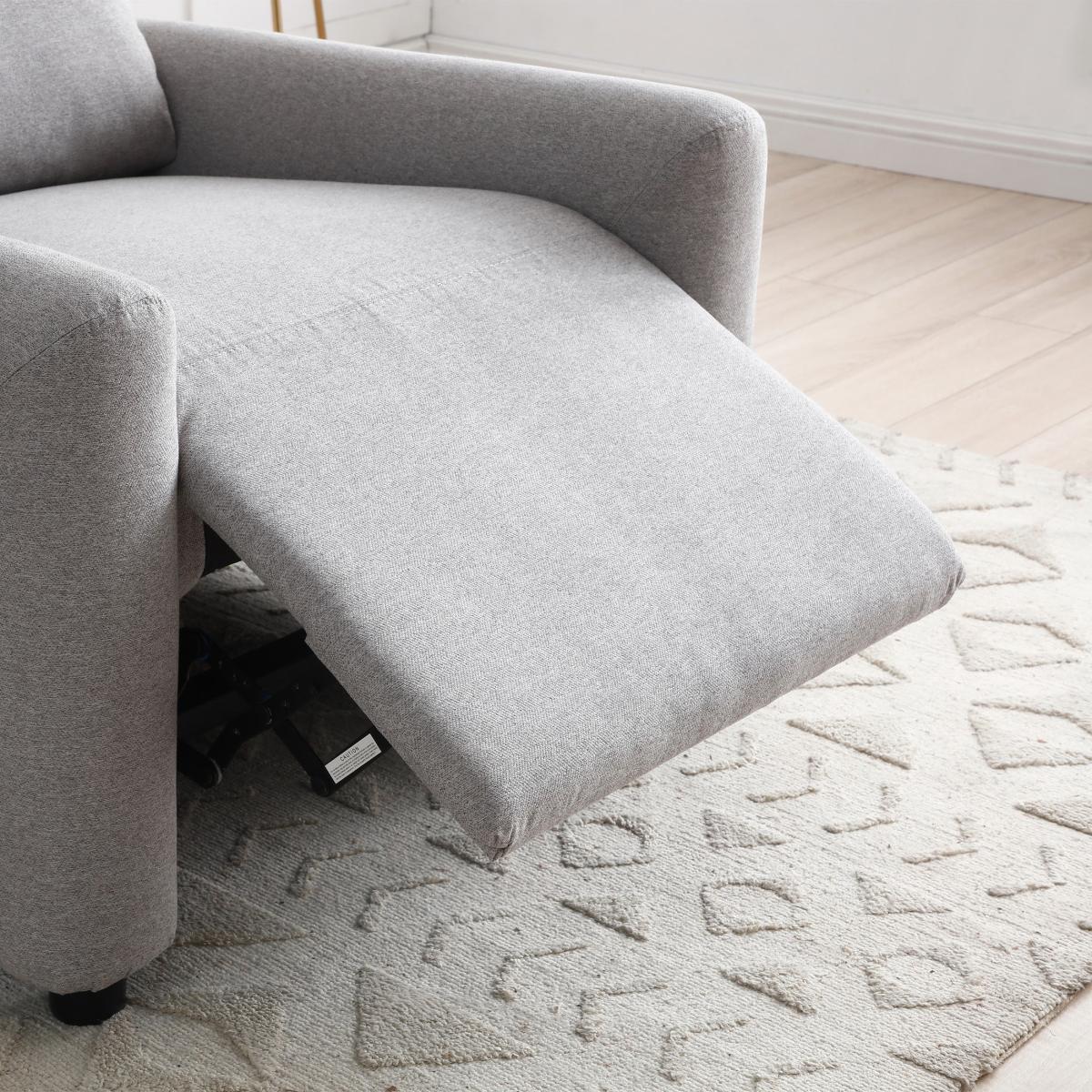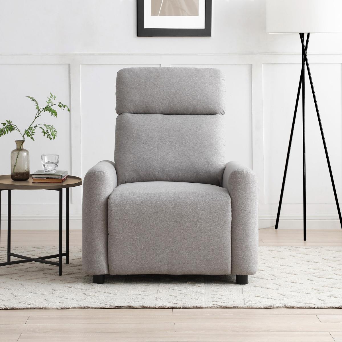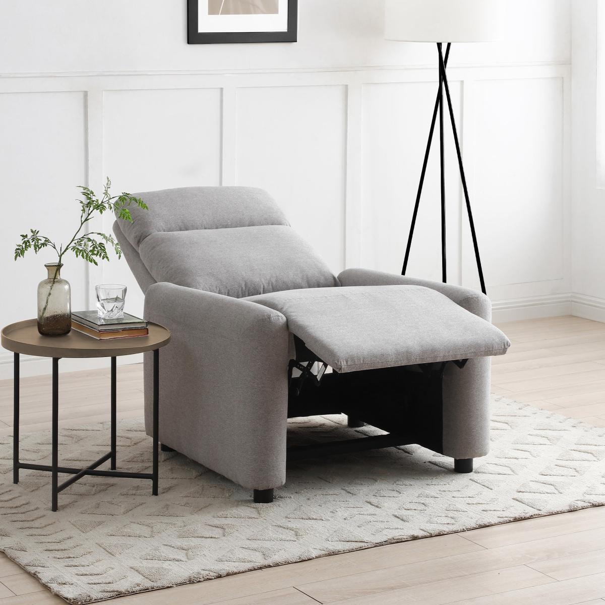 * Push Back Recliner* Soft Upholstery* Padded Head Rest This push-back recliner is designed for those who appreciate relaxation without compromising on aesthetics. The soft herringbone fabric not only adds a touch of sophistication but also provides a delightful tactile experience. The padded headrest and back ensure optimal comfort, making it an ideal spot for unwinding after a long day. Versatile and adaptable, the Riley Recliner suits any style of home decor, seamlessly integrating into your living space.