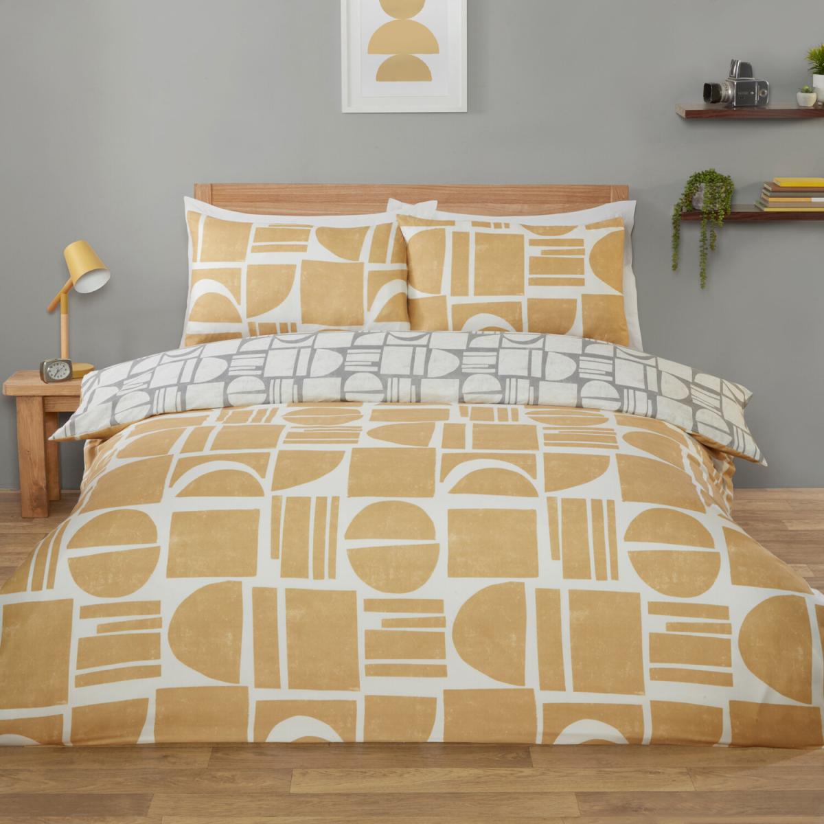 Riley Geo Reversible Bedding Set - Mustard / Single