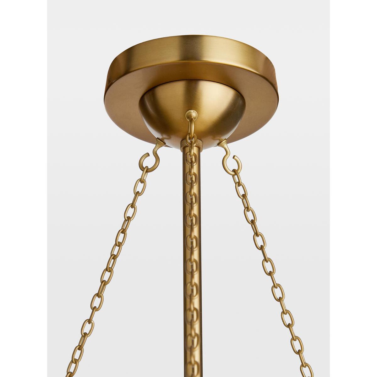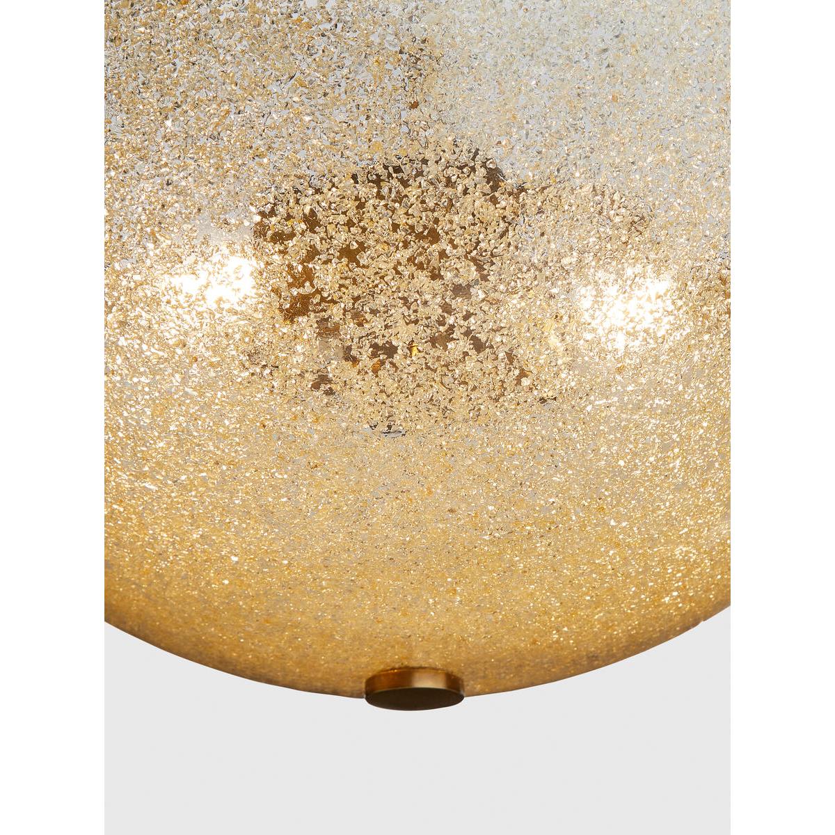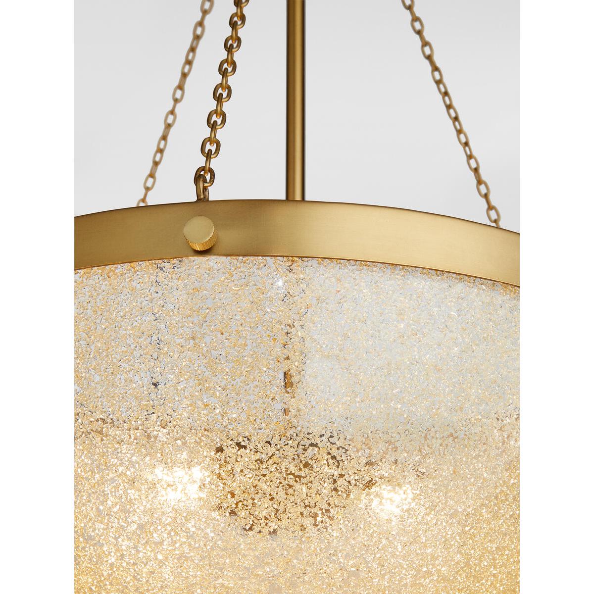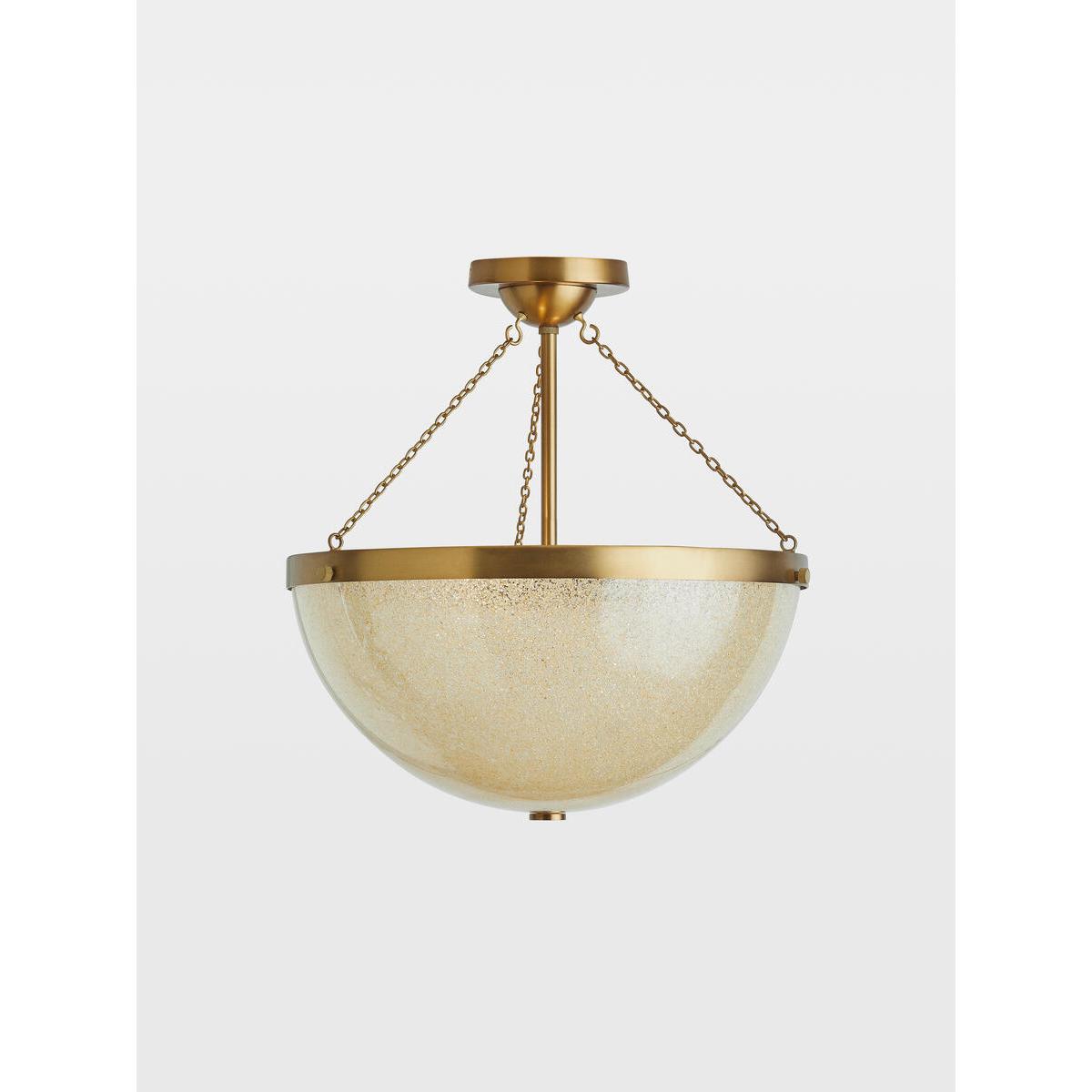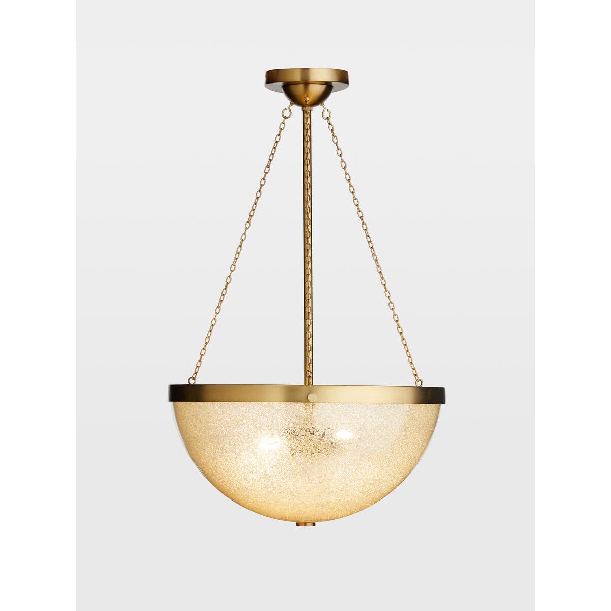 Taking cues from vintage styles seen at 40 Greek Street, the Riley is a dish-shaped pendant crafted from yellow sugar glass,which is suspended from three brass chains. It's a modern renditionof the uplighter styles that were popular in Georgian and Edwardianhomes. We suggest pairing the pendant with an incandescent bulb toenhance the frosted sugared glass. Inverted pendant. Three thin chain links in antique brass finish. Yellow textured glass. Vintage inspired. Requires 2 / E27 / 60W Max. Inspired by 40 Greek Street.