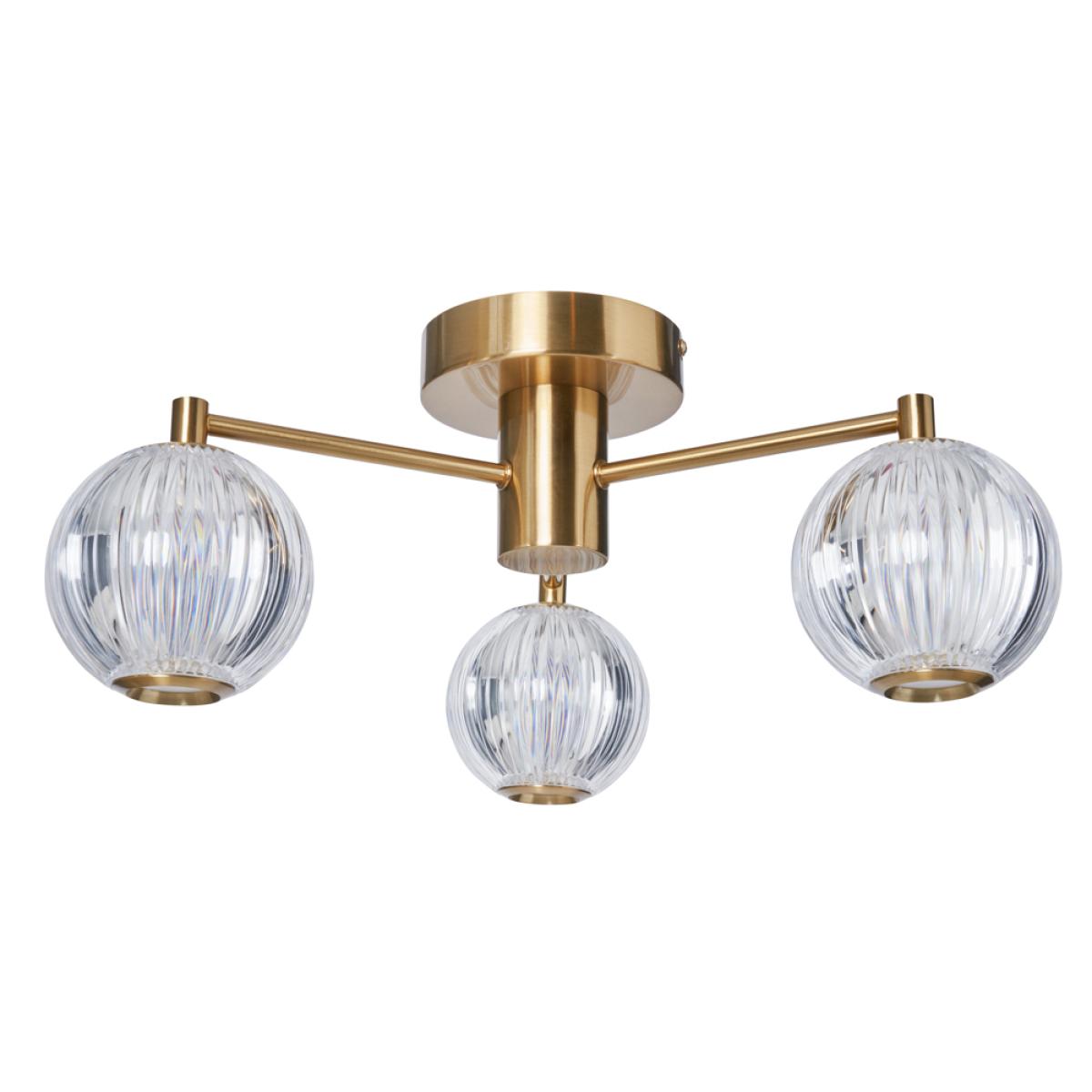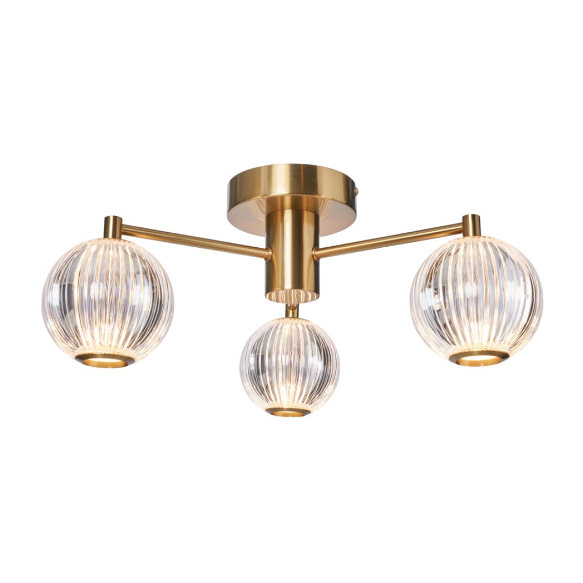 Add a touch of elegance to lower ceilings with the Rimi 3 Light LED Semi Flush Ceiling Light in Satin Brass. This stylish light fixture features three LED-illuminated glass globes, offering a contemporary aesthetic with an energy-efficient glow. The satin brass finish provides a timeless appeal, perfect for modern and traditional interiors. Semi-flush design ideal for rooms with standard ceiling heights; Integrated LED lights for energy efficiency and long lifespan; Satin brass finish enhances both classic and modern decor.