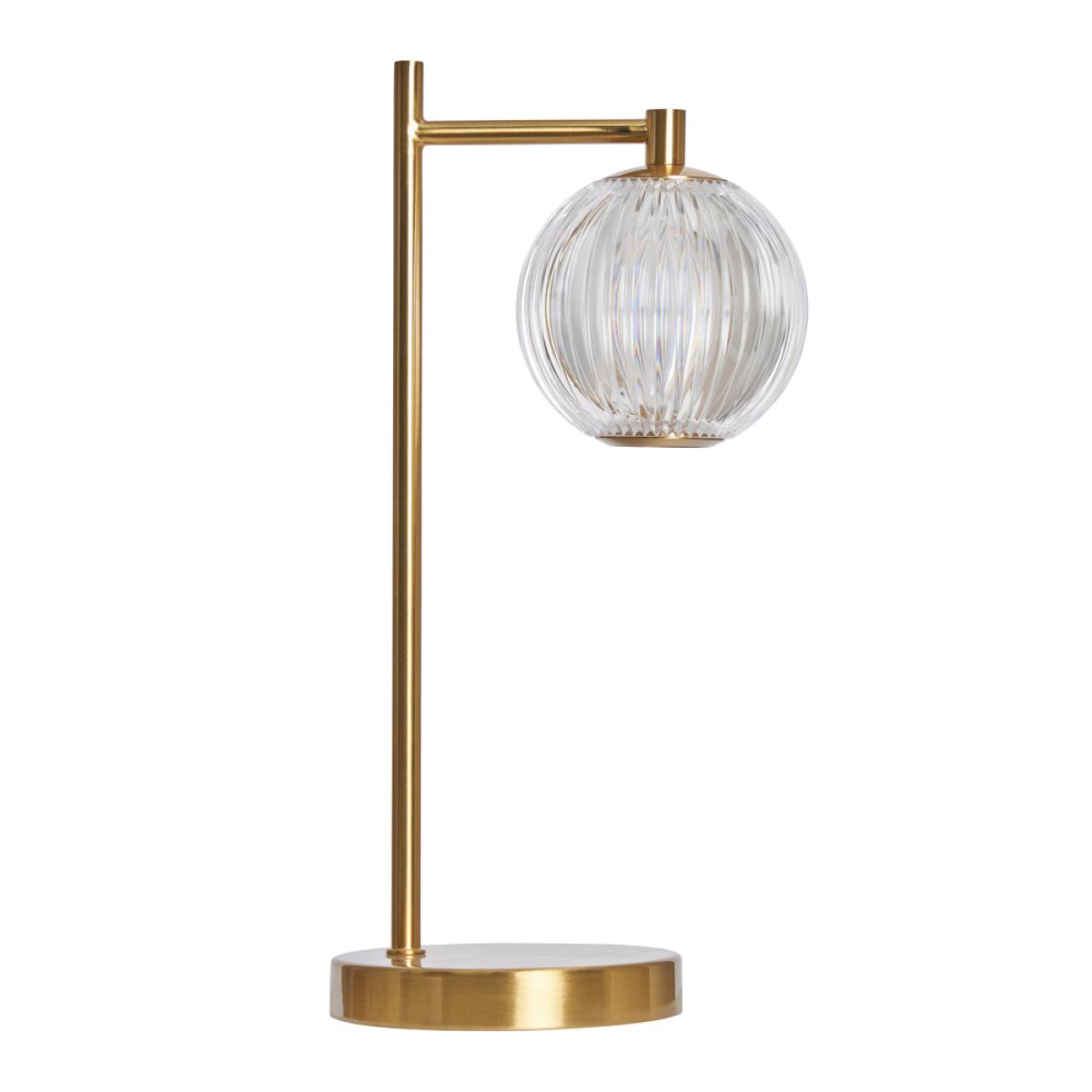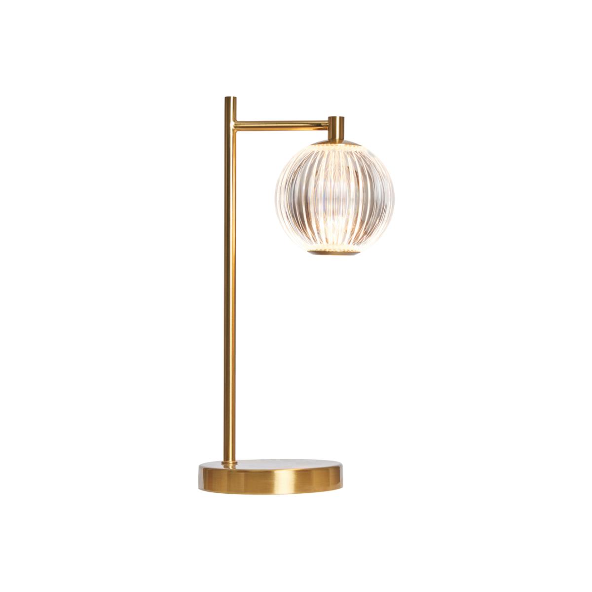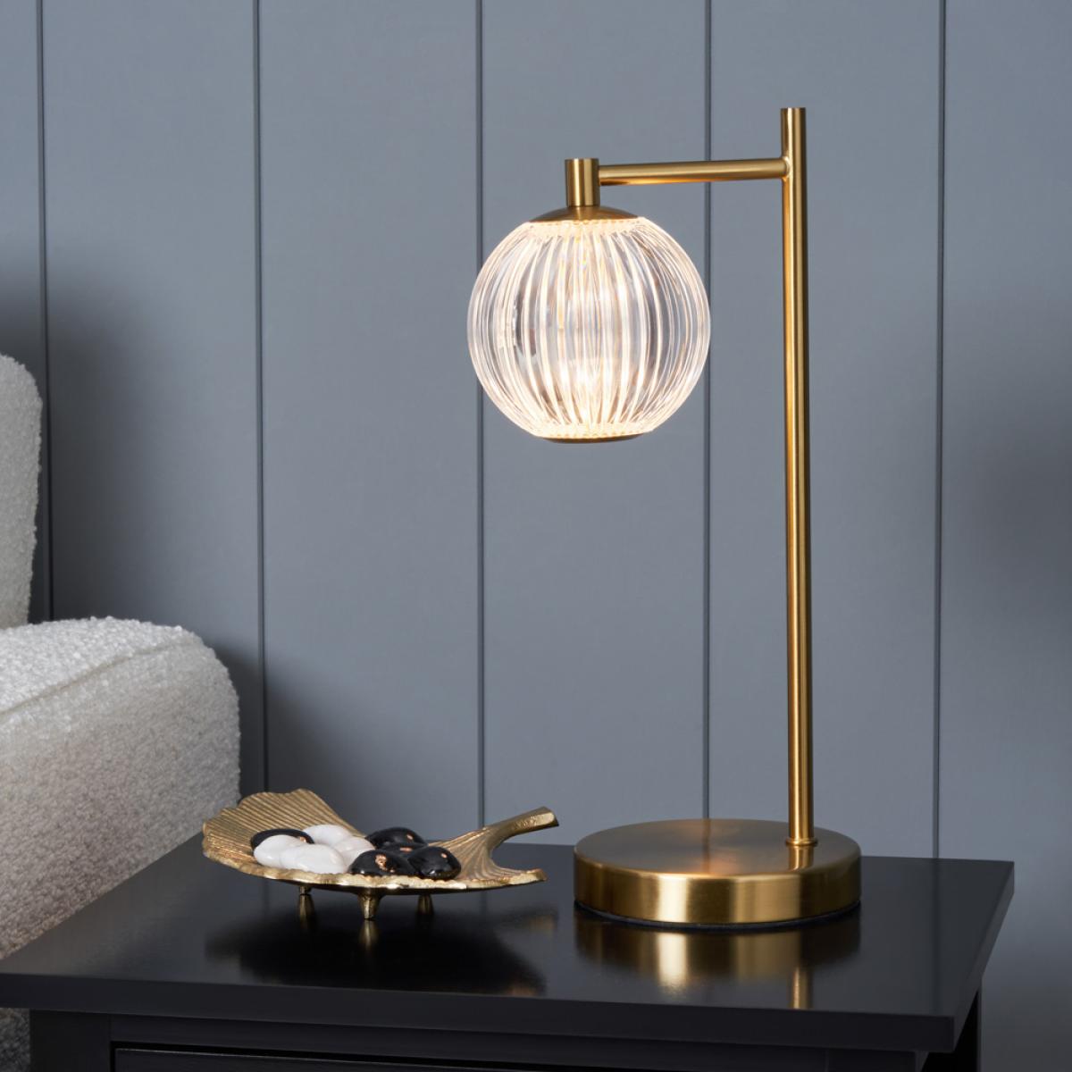 Add a modern and sophisticated touch to your space with the Rimi LED Table Lamp in Satin Brass. Its sleek metal frame and ribbed globe shade create a stylish, contemporary aesthetic, while the integrated LED bulb ensures energy-efficient illumination. This versatile lamp is perfect for bedside tables, desks, or side tables. Compact and stylish design suitable for any space; Satin brass finish enhances its modern appeal; Energy-efficient LED technology for long-lasting brightness.
