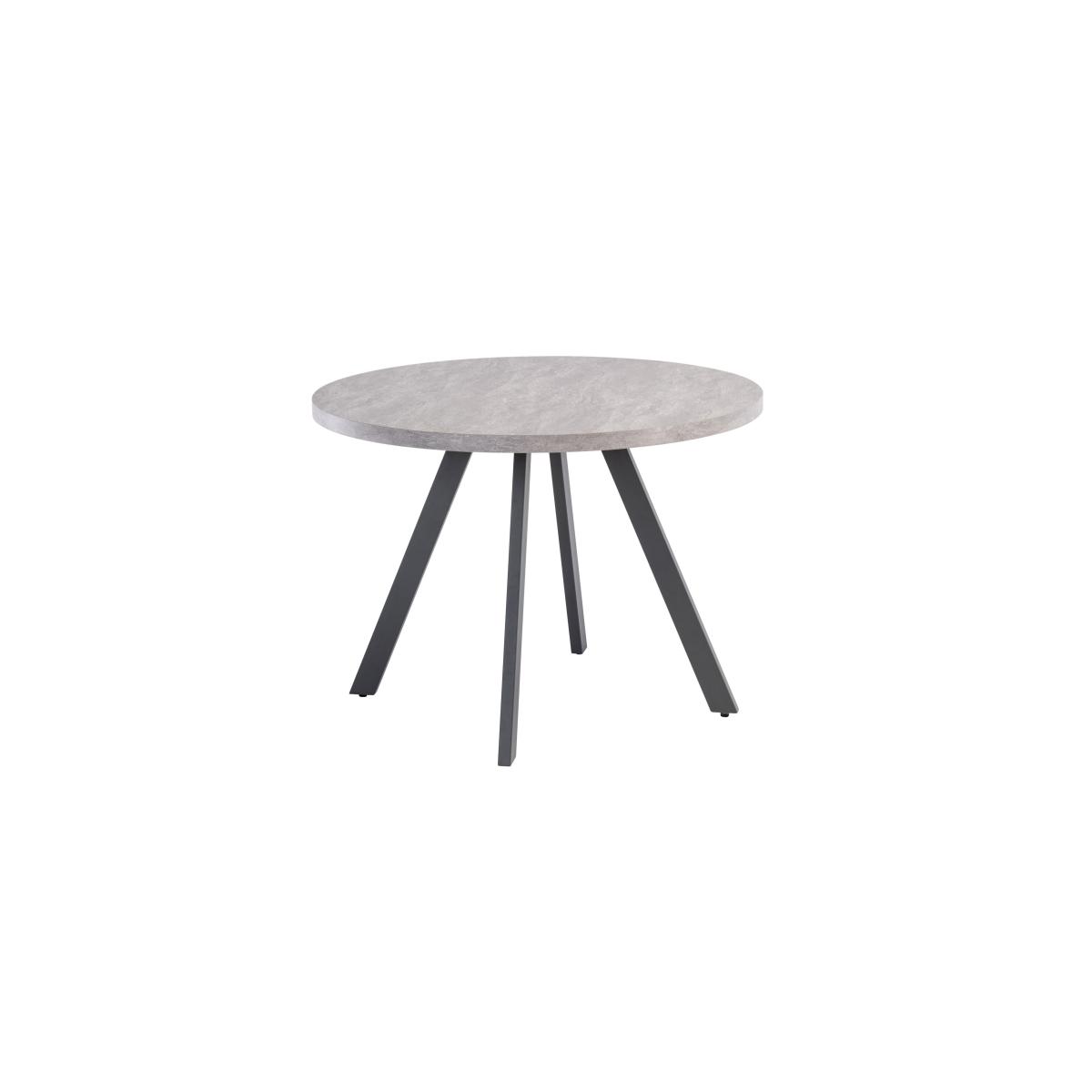 This round dining table will be the chicest thing in your house, no matter where it is. With a textured melamine finish table top and sleek black metal legs, this modern design is sure to be the centerpiece of your next dinner party.