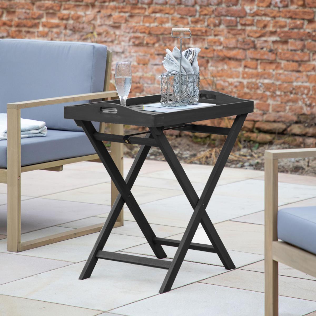 Ideal for when you have guests over, the Rimini Tray Table is a convenient and practical table for outdoor living. Crafted from acacia wood with a charcoal painted finish, this handy table features handles for easy grasping and is easy to transport with a foldable design so it’s also convenient to store. The tray-style top is ideal.