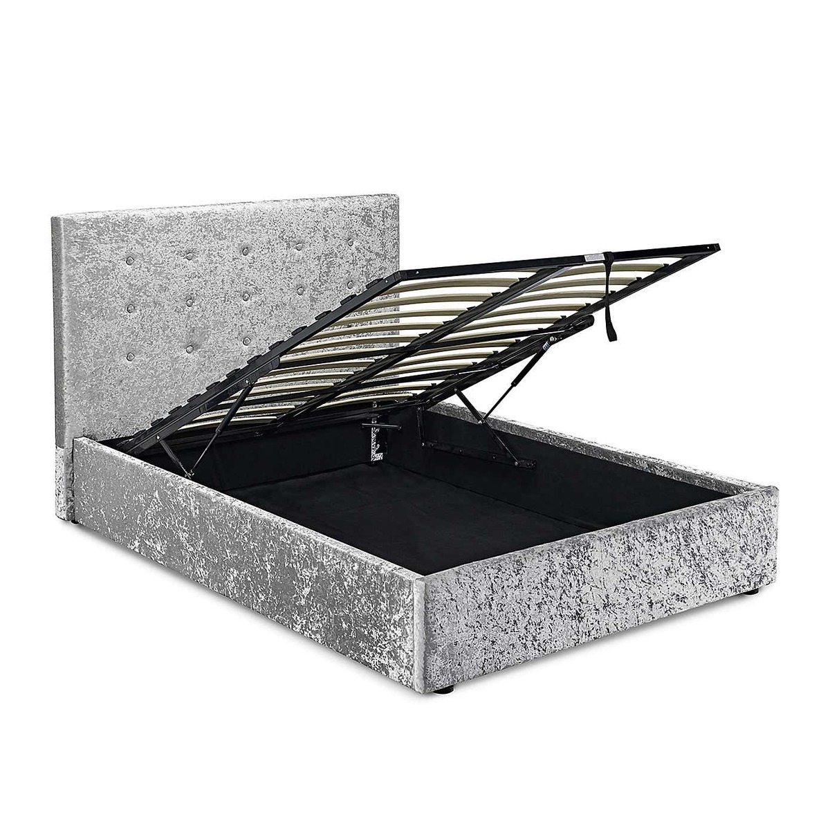 The gorgeous Rimini Crushed Velvet Ottoman Bed is upholstered in a sumptuous crushed velvet fabric and features a stylish buttoned headboard. A hydraulic lift base leads to a generous storage space beneath, whilst the sprung slats offer superb support and even help to prolong the life of your mattress.