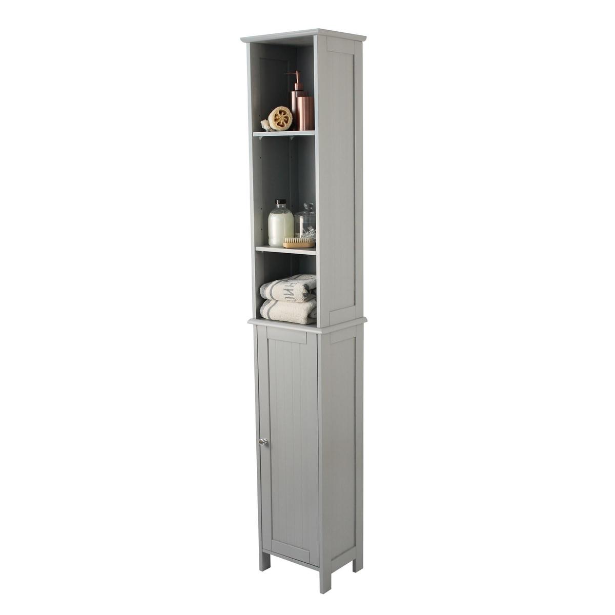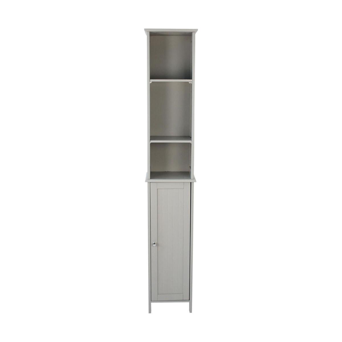 With a contemporary grey finish, this tall cabinet features six shelves;three open and three behind a hinged cupboard door. Ideal for storing and displaying your bathroom accessories and essentials, this cabinet brings you a stylish storage solution that takes up little floor space due to its tall, slim design.