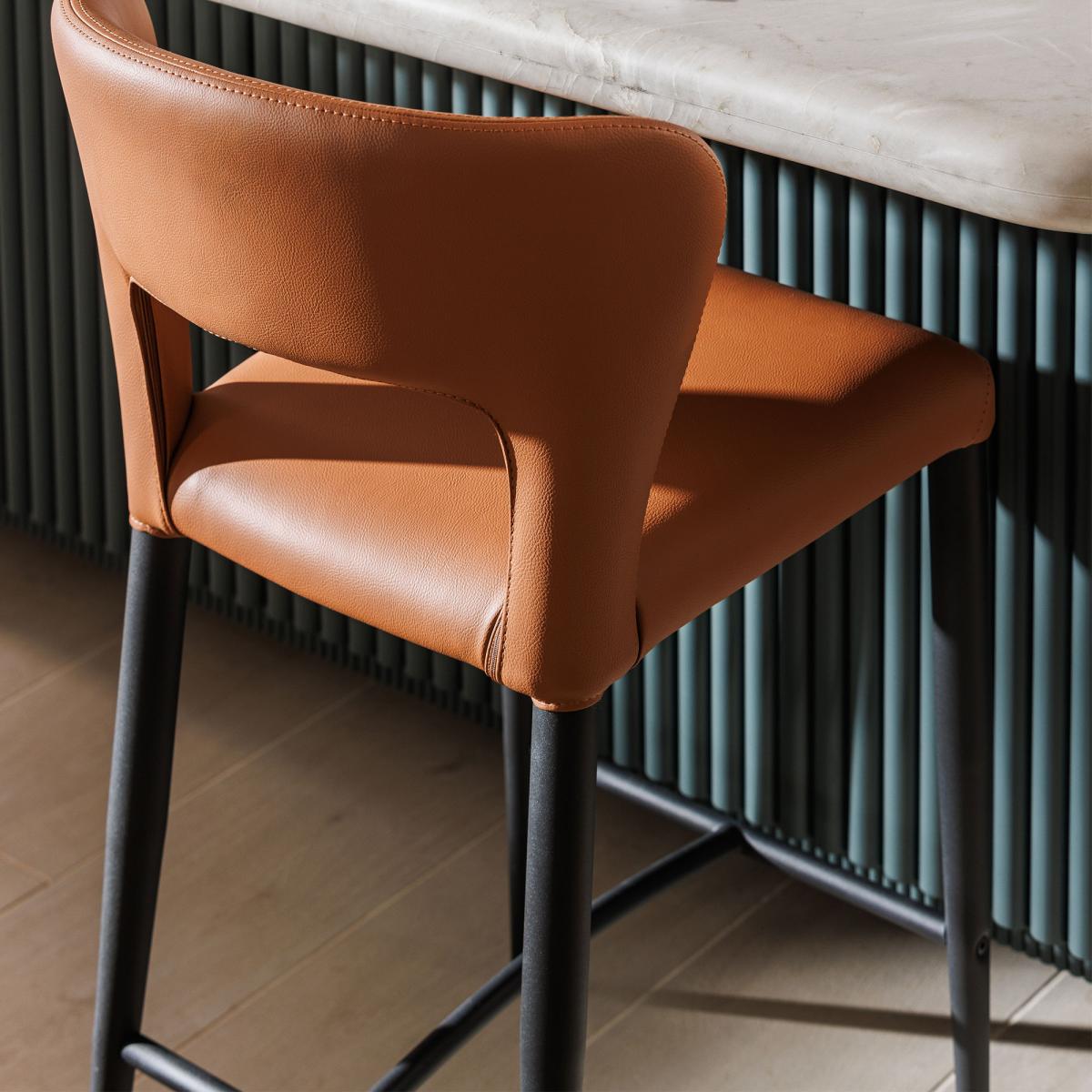I’m a fan of the Rin stool for its clean lines and warm tan upholstery - it slots neatly into contemporary kitchens, Scandi-inspired breakfast bars or an industrial loft. The slim black frame keeps the look light, while the leather-effect seat adds a touch of texture. For styling, line two or three at a white quartz island and balance them with darker bar pendants overhead. If you need extra comfort, drape a slim wool throw over the back. Its versatile hue also means you can swap in bolder cushions down the line without clashing.