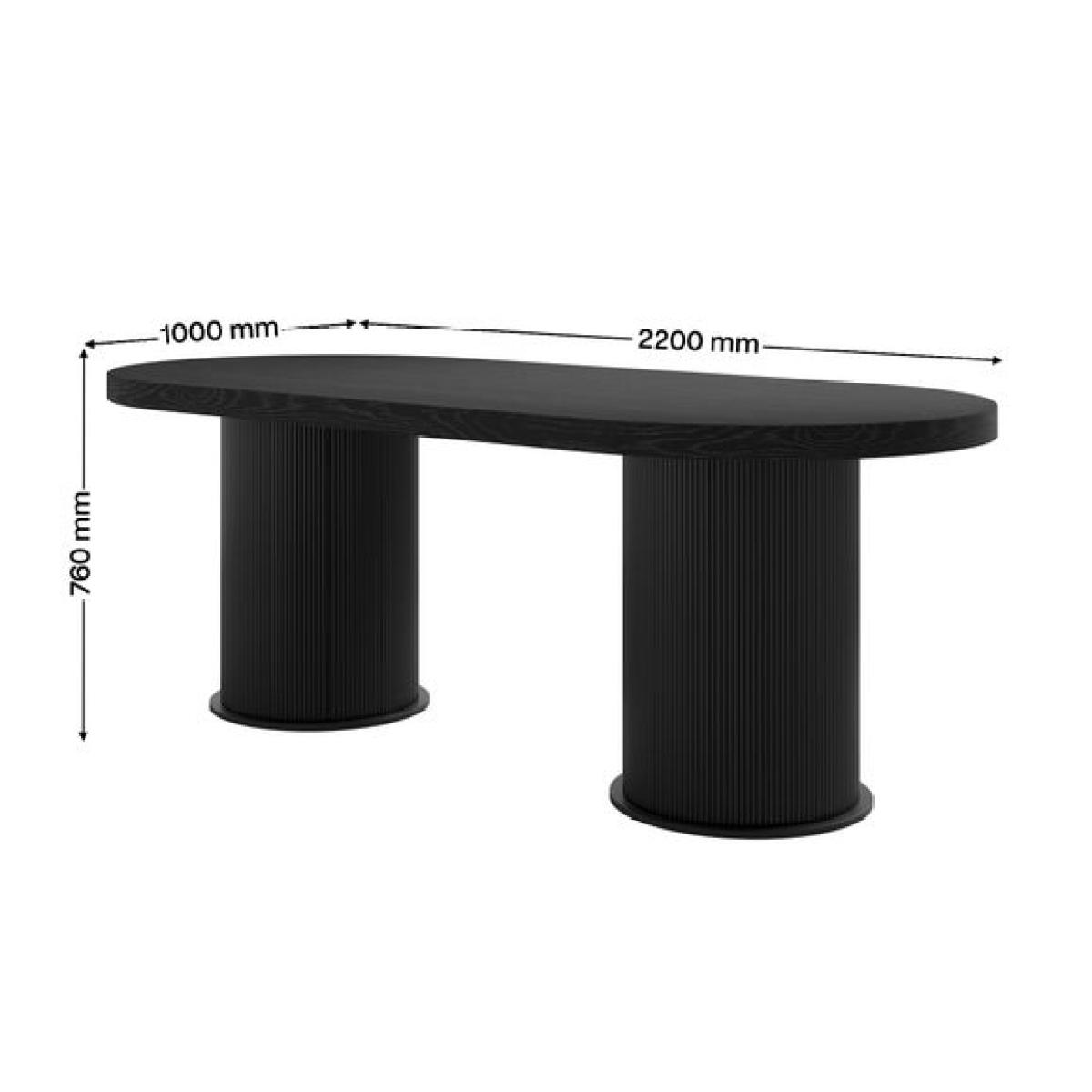 * Modern Look & Design * Made from Engineered Wood * Matt Black Finish * Comfortably Seats 6 People * Please Note: Dining Table Only - Chairs Not Included Striking yet simple, the Rina 6 Seater Dining Table blends modern design with bold character. Its smooth curved surface rests on a sculptural cylindrical base, all finished in a matt black grain that adds depth and texture. Comfortably seating six, it's the perfect centrepiece for everything from casual dinners to special occasions!