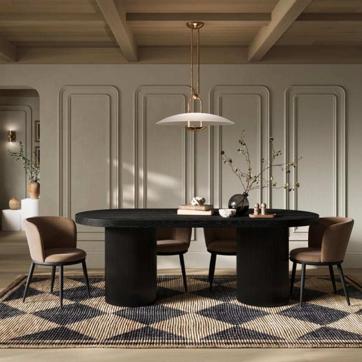 I love the Rina 6 Seater as it offers a sleek, contemporary look that balances well with both modern and classic interiors. Its substantial, dark-hued design makes it a versatile anchor piece for a variety of aesthetics, from minimalist to vintage-inspired spaces. Practical styling tips include pairing it with upholstered chairs for added comfort, or contrasting with lighter tableware and vibrant accessories to add visual interest. It also works well in open-plan kitchens and dining rooms, bringing a sense of elegance and functionality. To keep the look fresh, consider layered lighting with pendant lights or a statement centrepiece to create a welcoming and stylish dining area.