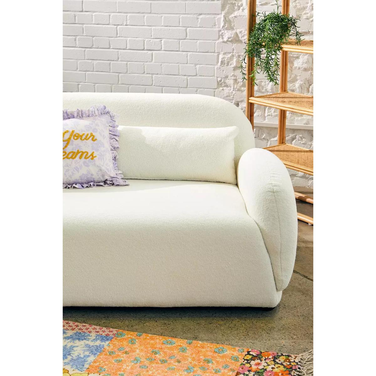 Add soft texture and silhouettes to your space with the modern Rina sofa. The curved-edge sofa is a two-seat classic with a boucle-knit upholstery and a plush interior fill. Finished with two matching cushions to chill out on in your space. *Online return only. This item cannot be returned instore. Please note furniture items currently cannot be shipped to Northern Ireland or The Republic of Ireland. Delivery of large furniture items may take 1-2 weeks and are therefore not eligible for Next Day Delivery.* **Content + Care** \- Textile, Eucalyptus wood \- Spot clean **Size** \- 170cm x 68.5cm x 86cm