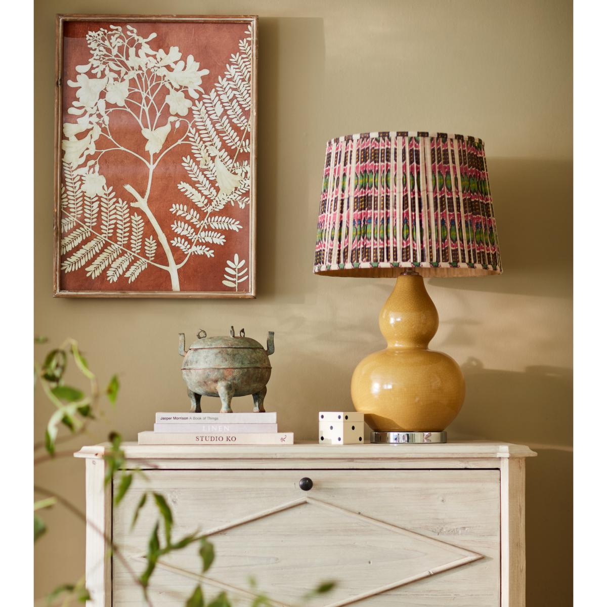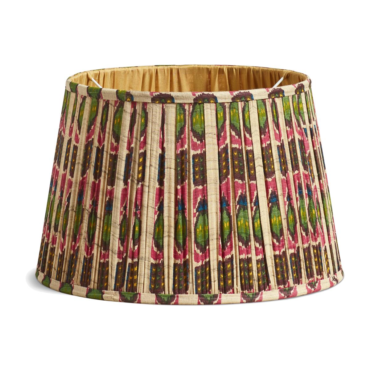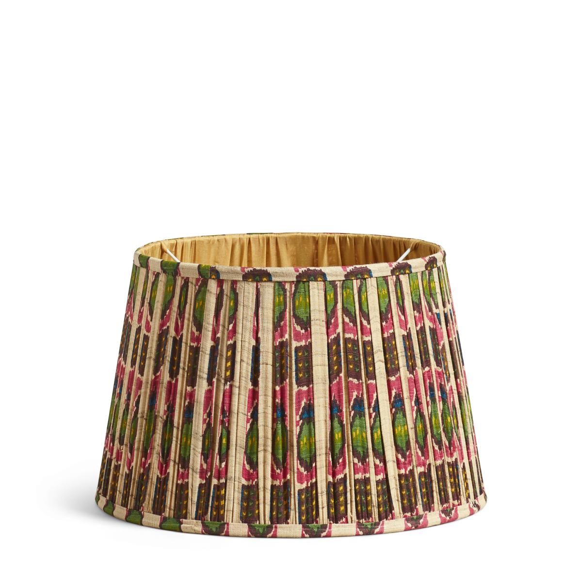 Choose bright and bold with our Rinca Lampshades that match our popular Rinca Cushion Covers. The colours pop on the pleated body of the shade and look all the better when the lamp is switched on – the perfect way to top a simple base. The shades are lined with a taupe fabric that lends the light a warm glow. They are available in two sizes.