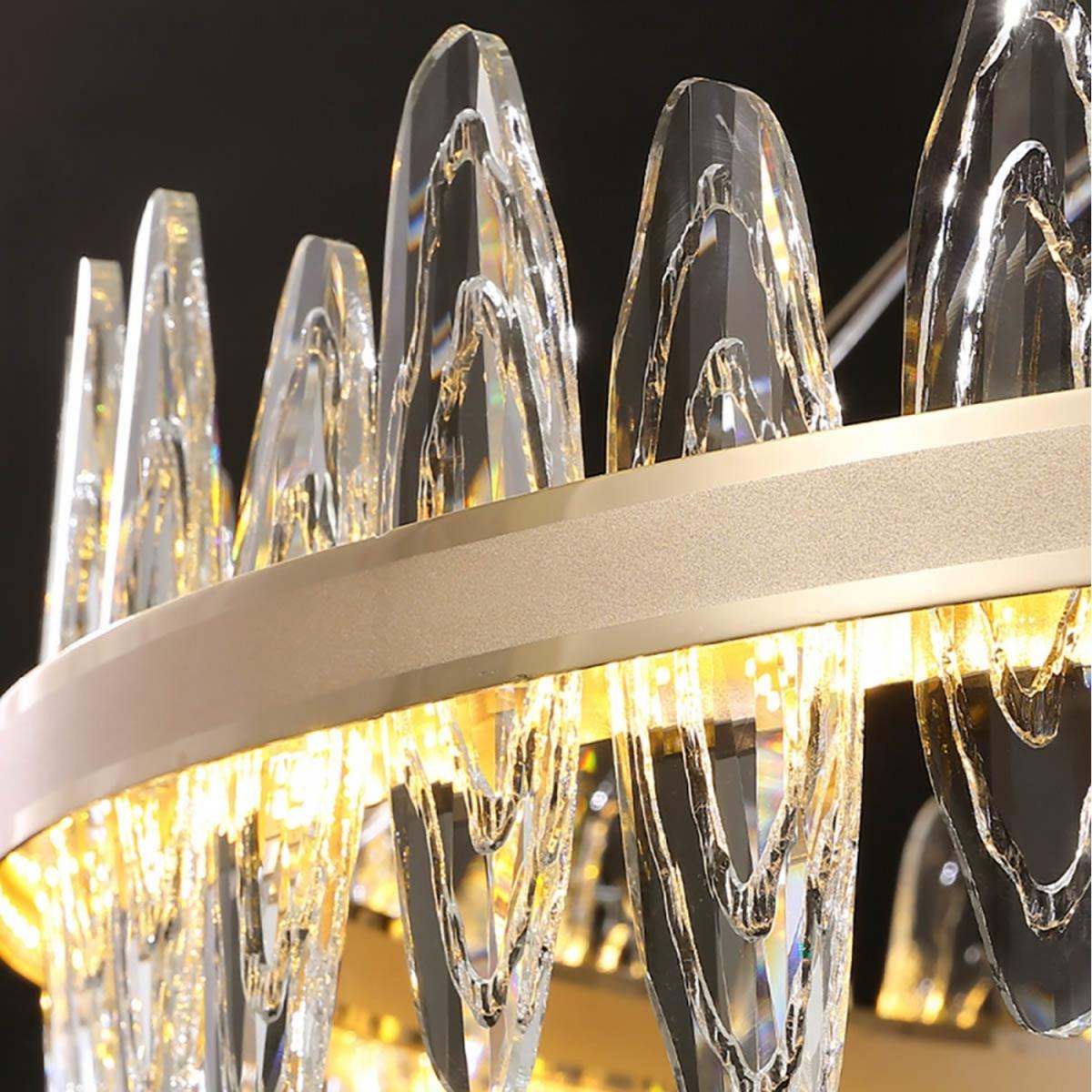 I love this chandelier because it offers a versatile touch of glamour with its genuine crystal details and warm gold finish. The three LED colours make it adaptable, perfect for creating different atmospheres - whether you want warm cosy lighting or a brighter, more energised feel. It works well in a range of interiors, from contemporary open-plan living spaces to more luxe dining areas or even a stylish hallway. For styling tips, I suggest pairing it with minimalist furniture to let the chandelier be the statement piece, or complementing it with other gold accents for a cohesive look. Be mindful of its size and scale so it balances well within your space, and consider a dimmer switch to control the ambiance effortlessly.