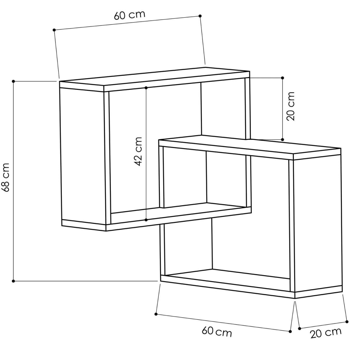 Nice design to maximise shelving options with limited space, fits the corners very well. Typical flat pack construction, manufactured wood with veneersolid finish. Very quick and easy to assemble, comes with solid wall plugs. All fittings included as well as a drilling diagram to place all fittings in one hit.
