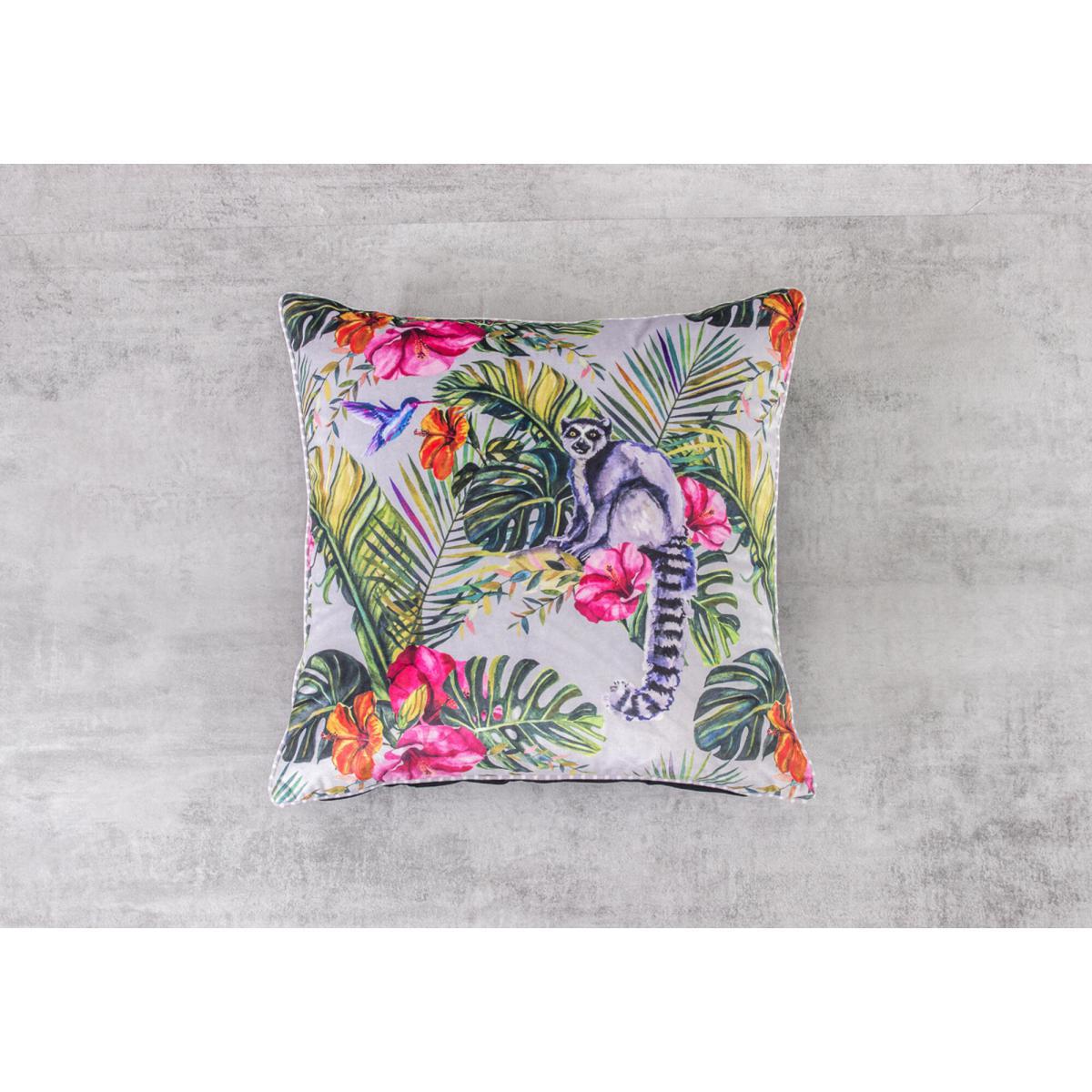 Bring a touch of the exotic into your space with this Botanical Print Cushion. In various hues of Green and Teal, an array of tropical foliage tumbles across the design, with an inquisitive Lemur taking centre stage.