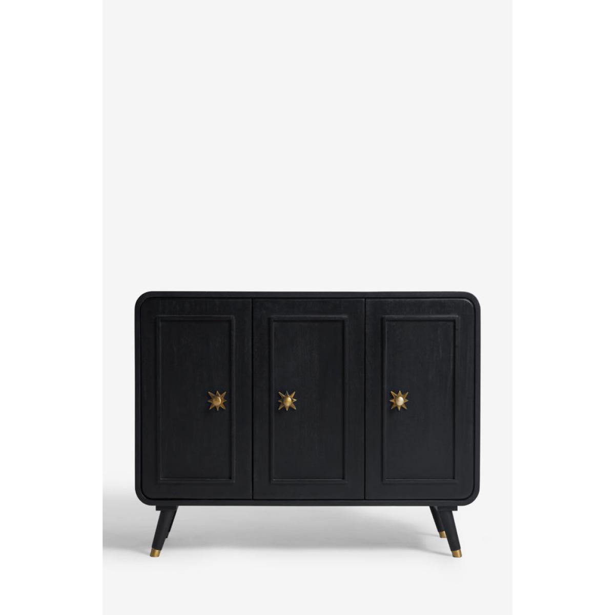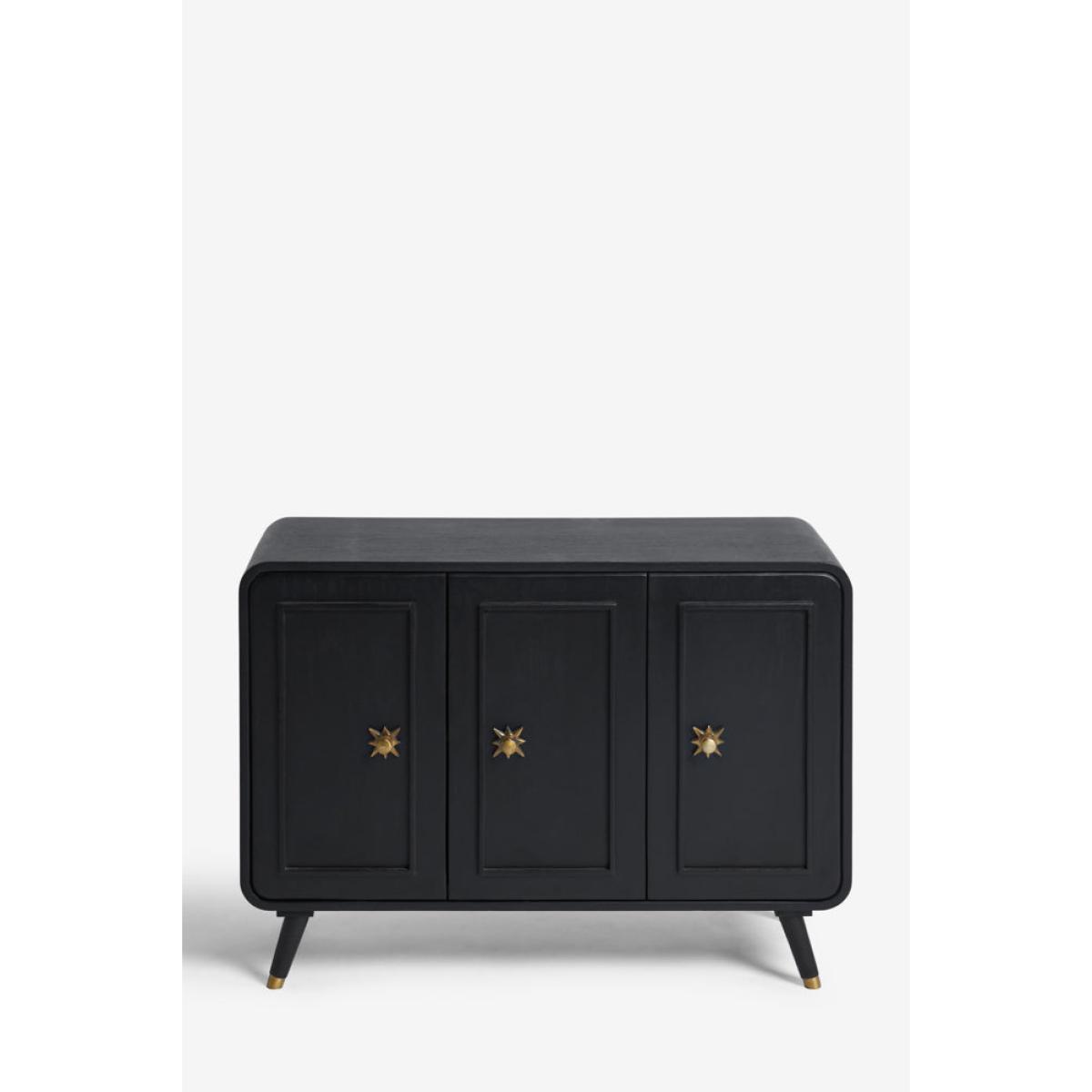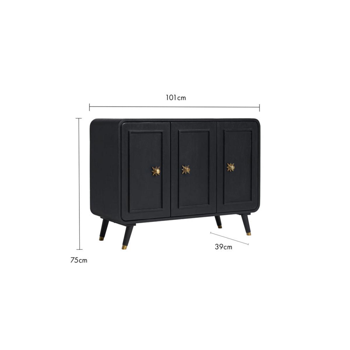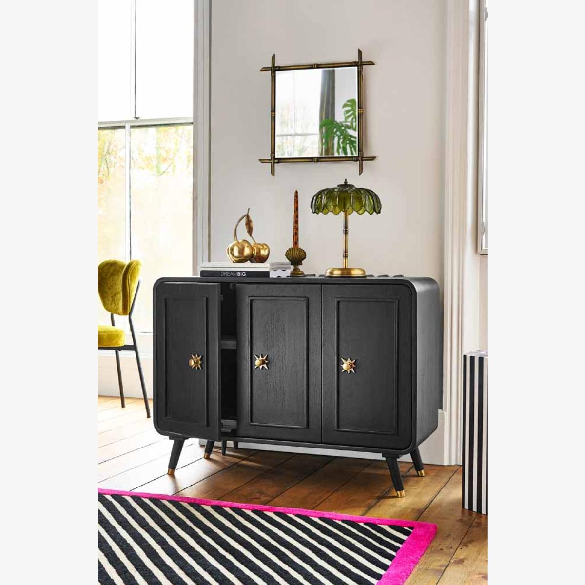 This delightful little number is as pretty as a picture, featuring dark stained wood, gold-tipped mid-century-style legs and gold star handles that add more than a touch of glamour. The ribbing detail of the cupboard doors and curvy silhouette give this a modern retro feel we just adore, and as much thought has been given to the inside of this piece as it has to the exterior. There’s a dual shelf set-up, with more than enough space for books, magazines, coasters, board games and other living room essentials, while it’s sturdy enough to be styled as a shelfscape, too. Add bright blooms, lashing of greenery, colourful ornaments and your favourite photographs and you have an anchor point to your room right there. We love! - Ringo Sideboard - Material: Mango Wood, MDF - Measures: H75cm x W101cm x D39cm