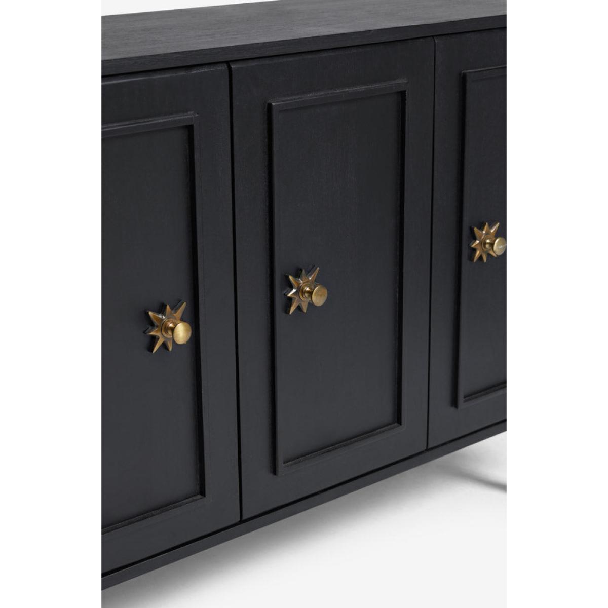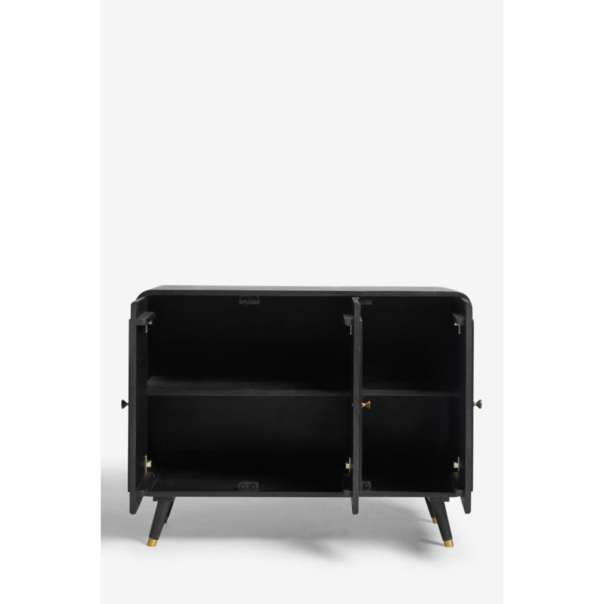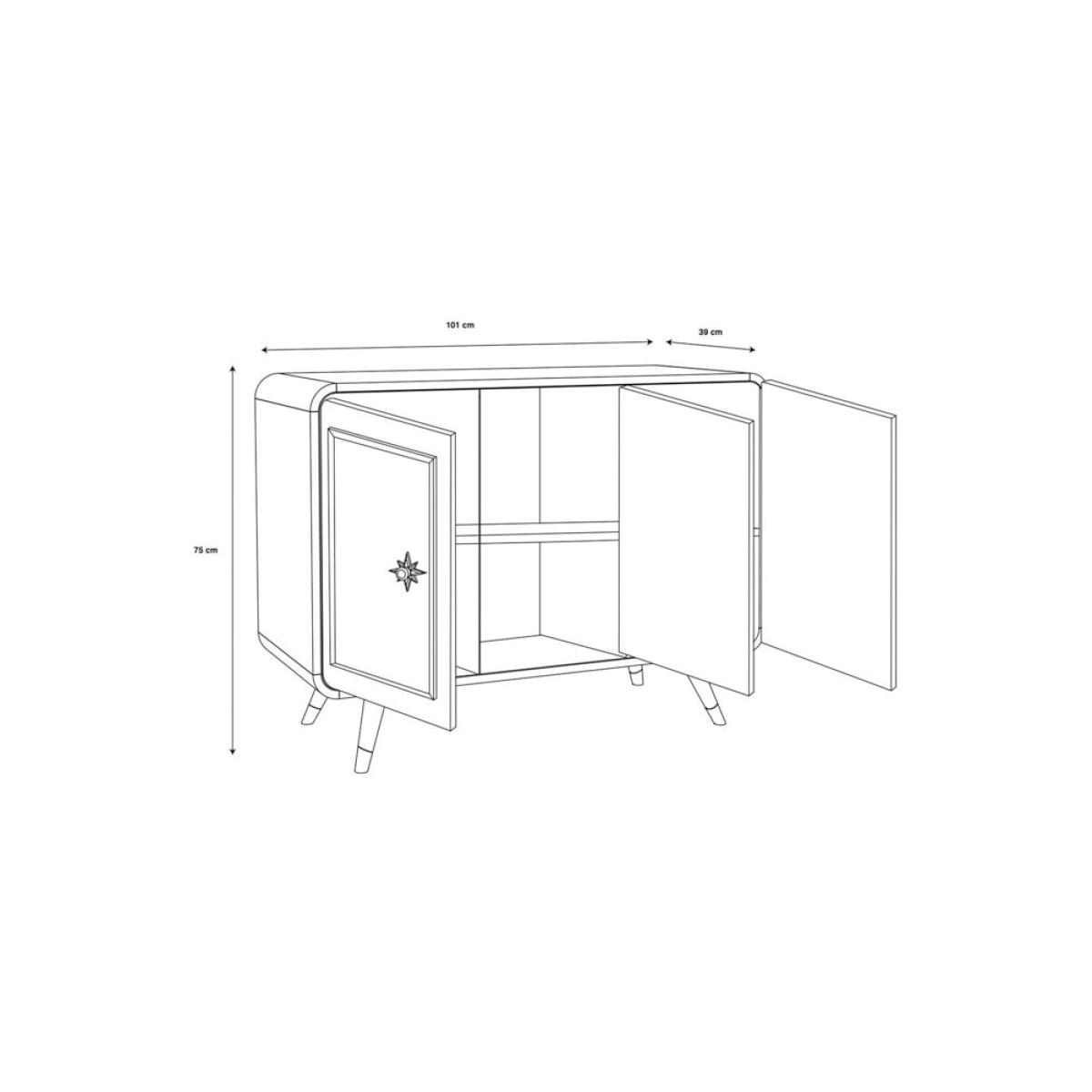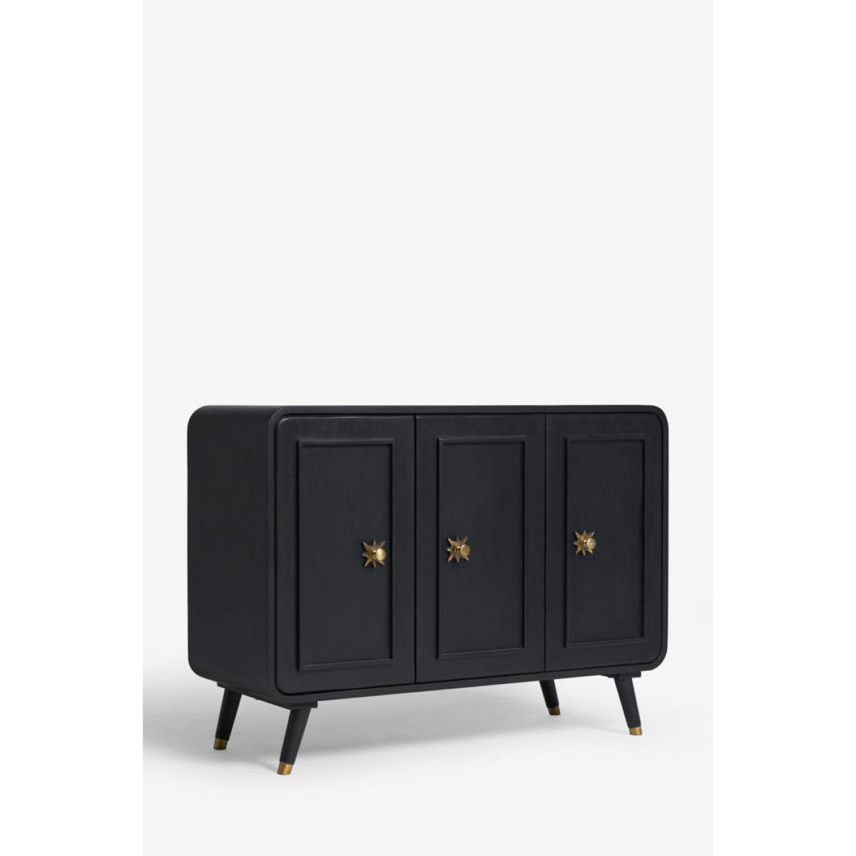 This delightful little number is as pretty as a picture, featuring dark stained wood, gold-tipped mid-century-style legs and gold star handles that add more than a touch of glamour. The ribbing detail of the cupboard doors and curvy silhouette give this a modern retro feel we just adore, and as much thought has been given to the inside of this piece as it has to the exterior. There’s a dual shelf set-up, with more than enough space for books, magazines, coasters, board games and other living room essentials, while it’s sturdy enough to be styled as a shelfscape, too. Add bright blooms, lashing of greenery, colourful ornaments and your favourite photographs and you have an anchor point to your room right there. We love! - Ringo Sideboard - Material: Mango Wood, MDF - Measures: H75cm x W101cm x D39cm