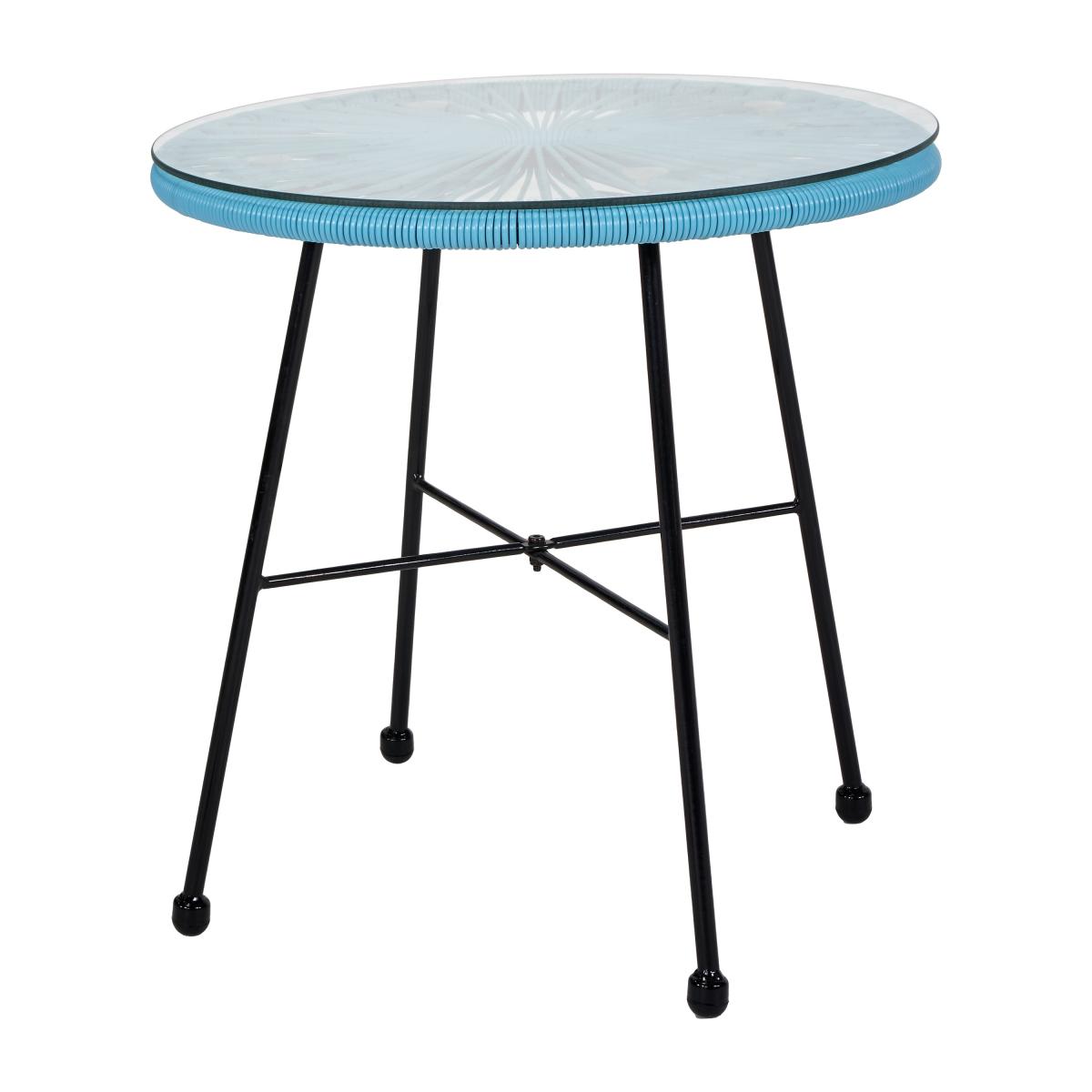 Add a burst of colour and stylish funky design to your outdoor space, whether you enjoy hosting garden parties or sipping on a relaxing drink in the garden, the Rio 3 Piece Bistro Set will surely be a talking point amongst your guests. Complete with two comfortable rounded chairs and a matching table, this set adds sleek lines and bright pops of colour from the PU string weave, contrasted with dark powder coated steel frame for stability. With a clear glass table top that complies with the British Standard Safety Glass, you can enjoy modern transparency, a handy space to place your drinks and snacks and an easy to wipe clean surface.