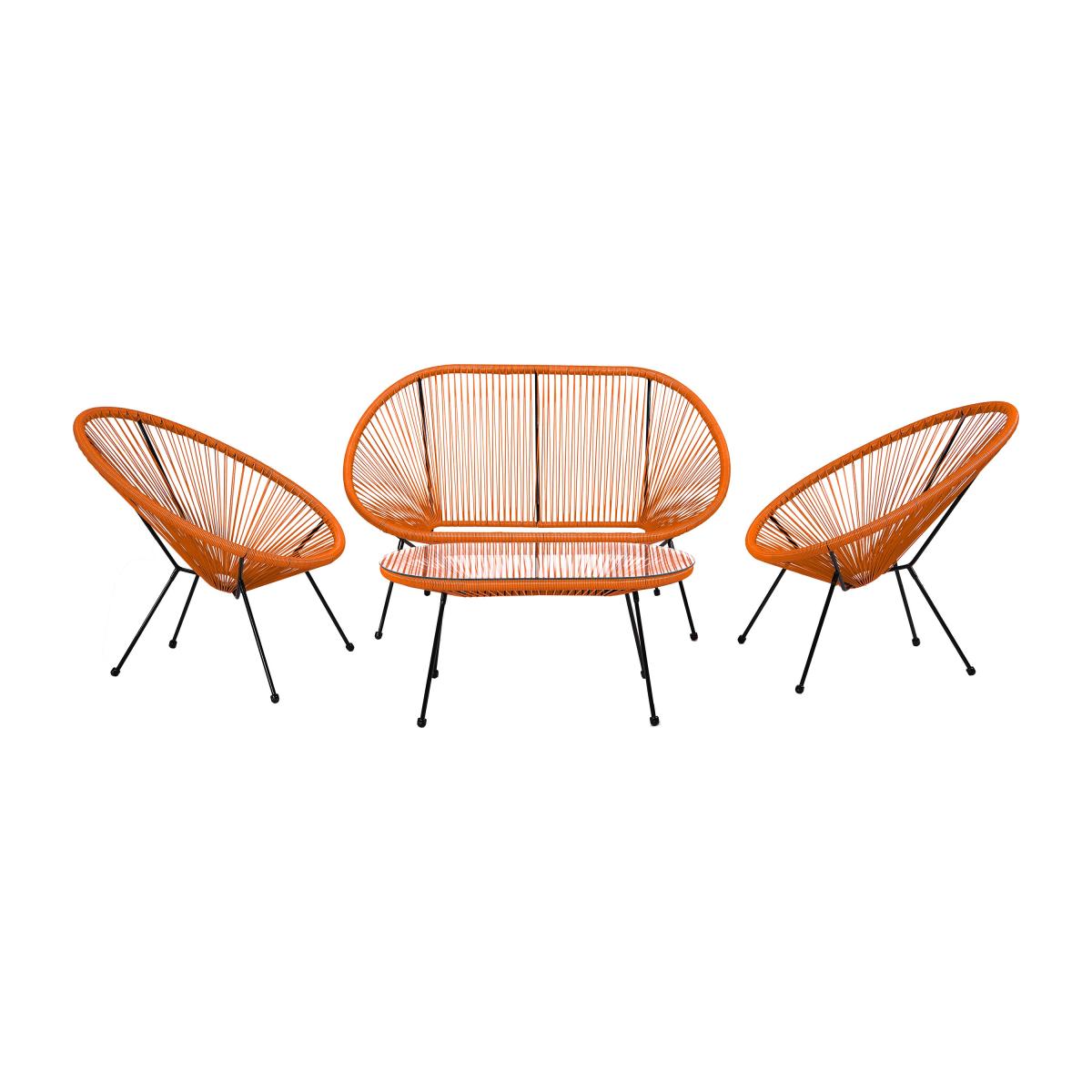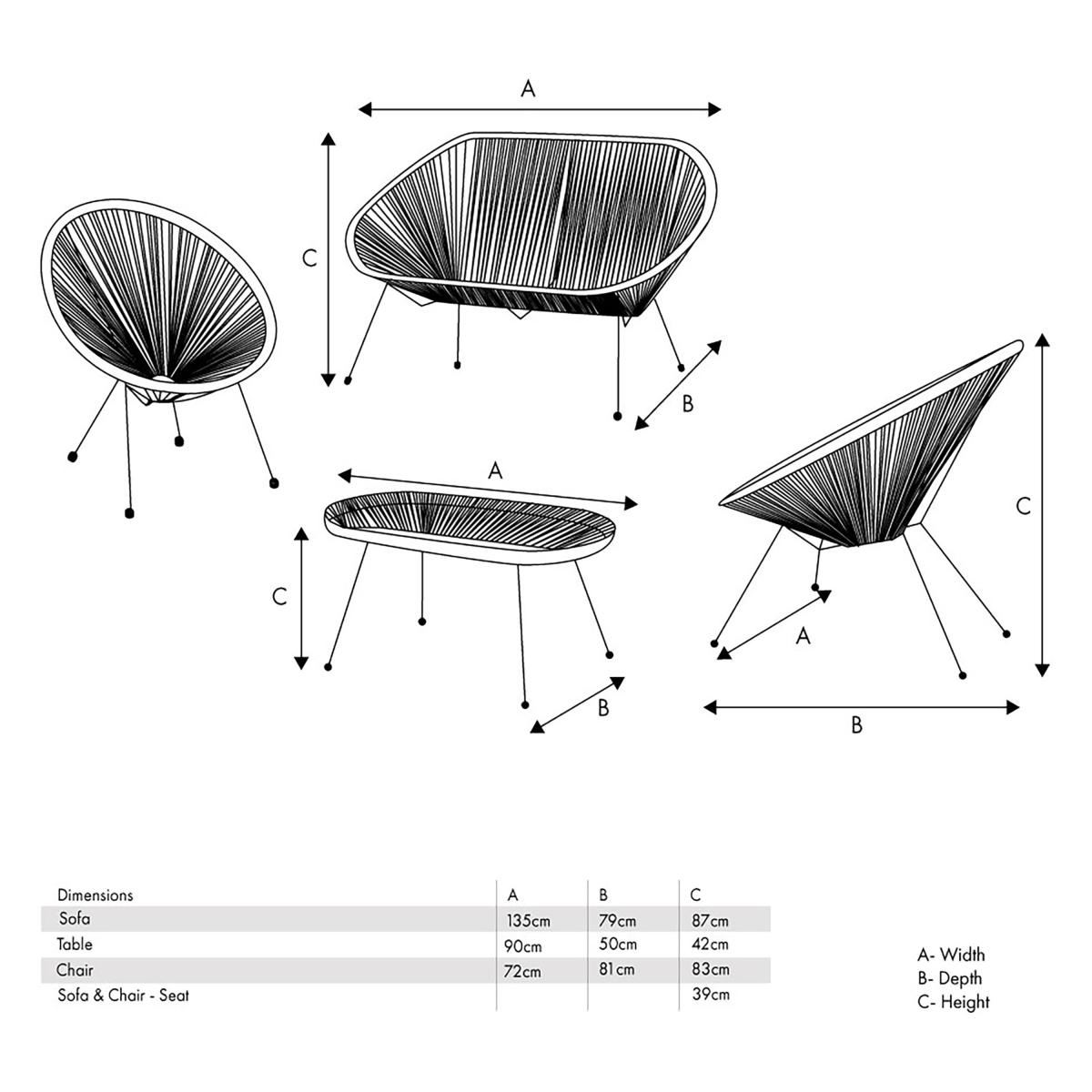 Add a burst of colour and minimalist design to your outdoor space, whether you enjoy hosting garden parties with friends or sipping on relaxing drink with your loved ones, the Rio 4 Piece Seating Set will surely be a talking point with whoever you invite over. Complete with two comfortable slouch shaped chairs, a sofa and a matching table, this set adds sleek lines and bright pops of colour from the PU string weave, contrasted with dark powder coated steel frame for stability. With a clear glass table top that complies with the British Standard Safety Glass, you can enjoy modern transparent style, a handy space to place your drinks and snacks and an easy to wipe clean surface.