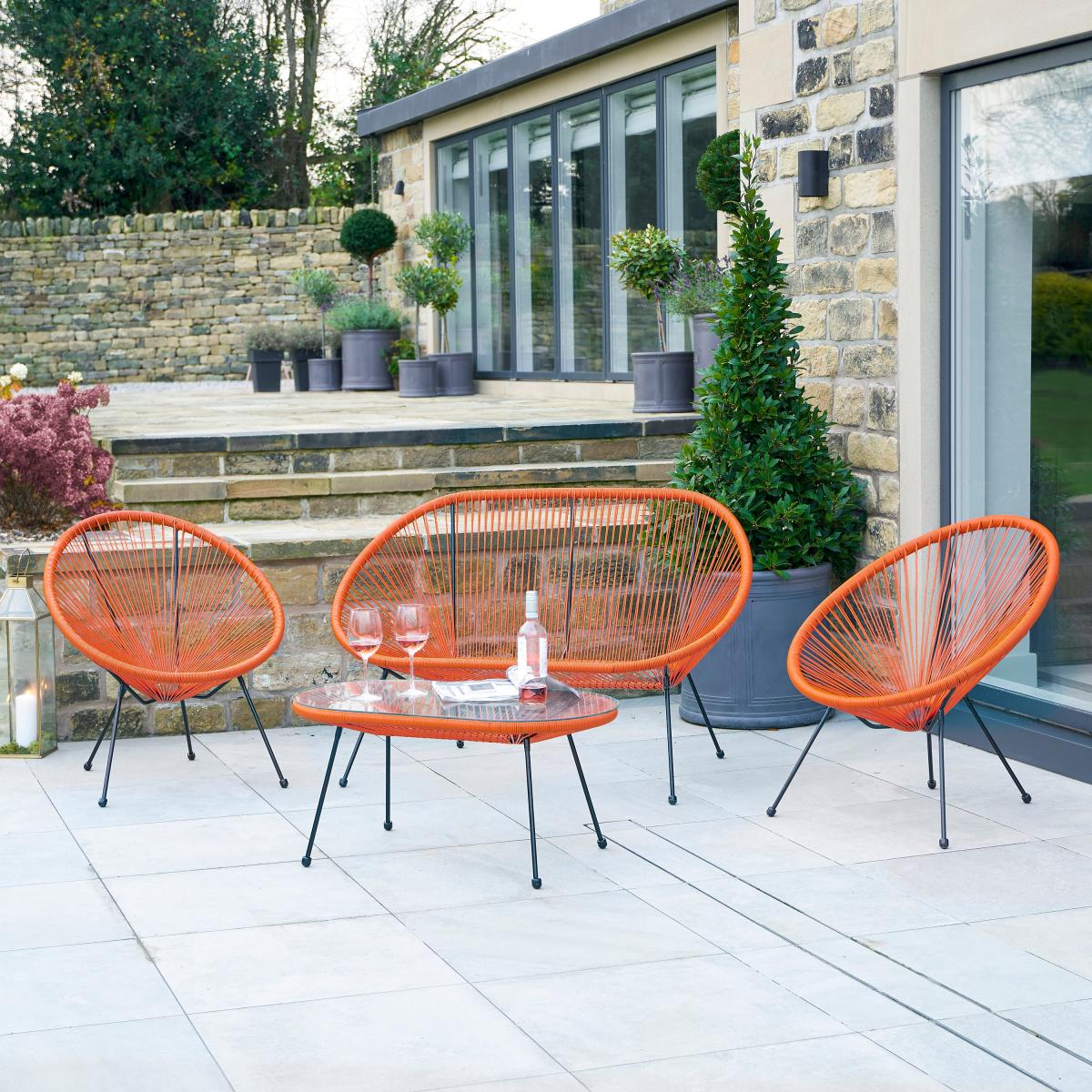 I love the Rio 4 Piece Rattan Seating Set in a vibrant orange because it instantly adds a pop of colour and a lively, modern feel to any garden or patio. It works particularly well in contemporary or pared-back outdoor spaces, where its sleek design can be a statement piece. Style it with neutral or simple textiles, such as linen cushions or a minimalist outdoor rug, to let the bold colour stand out without overwhelming the space. Practical tips include pairing it with a neutral coloured parasol or outdoor lighting to create a welcoming vibe for relaxing evenings. Given its lightweight design, it’s also perfect for flexible outdoor arrangements or moving around to suit your gatherings.