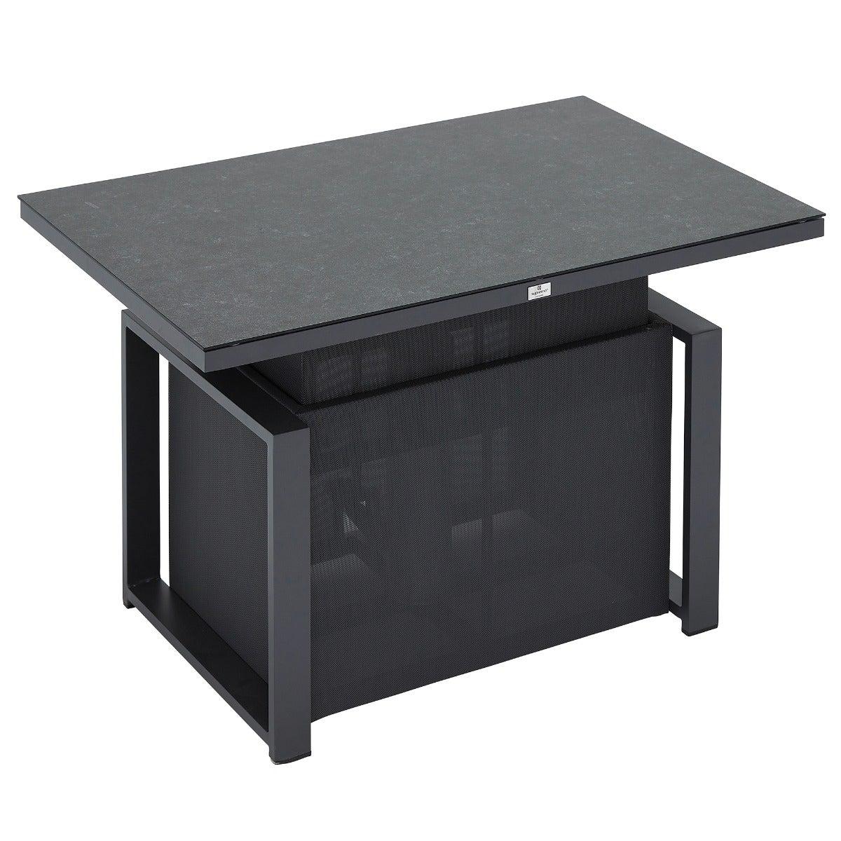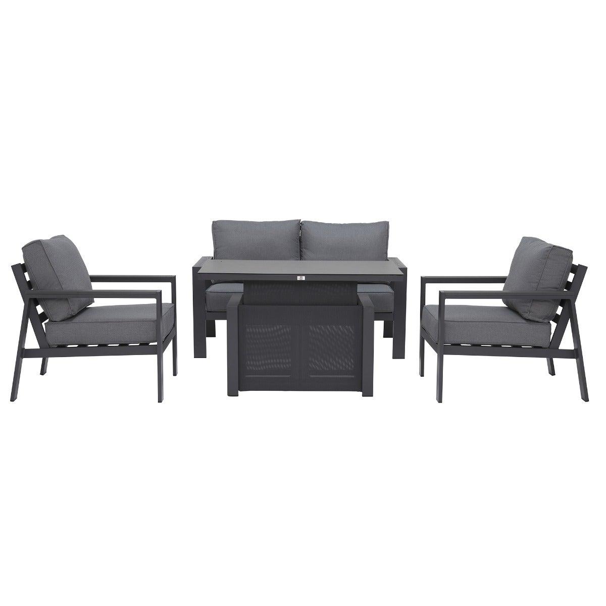 Design. A stylish yet casual arrangement, the practical Rio 4 Seat Garden Lounge Set is ideal for both lazing and lunching with room for up to 4 and a handy rising table. Effortlessly modern with a grey aesthetic that looks just as sophisticated on patios as it does on decking areas, the Rio 4 Seat Garden Lounge Set includes plump cushioning for keeping you comfortable while you soak up the rays - with the added bonus of damp resistant and fast drying fabric to help defend against pesky summer showers.