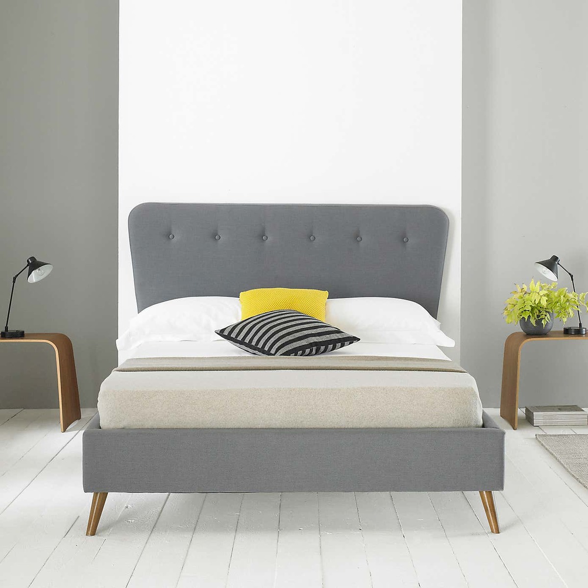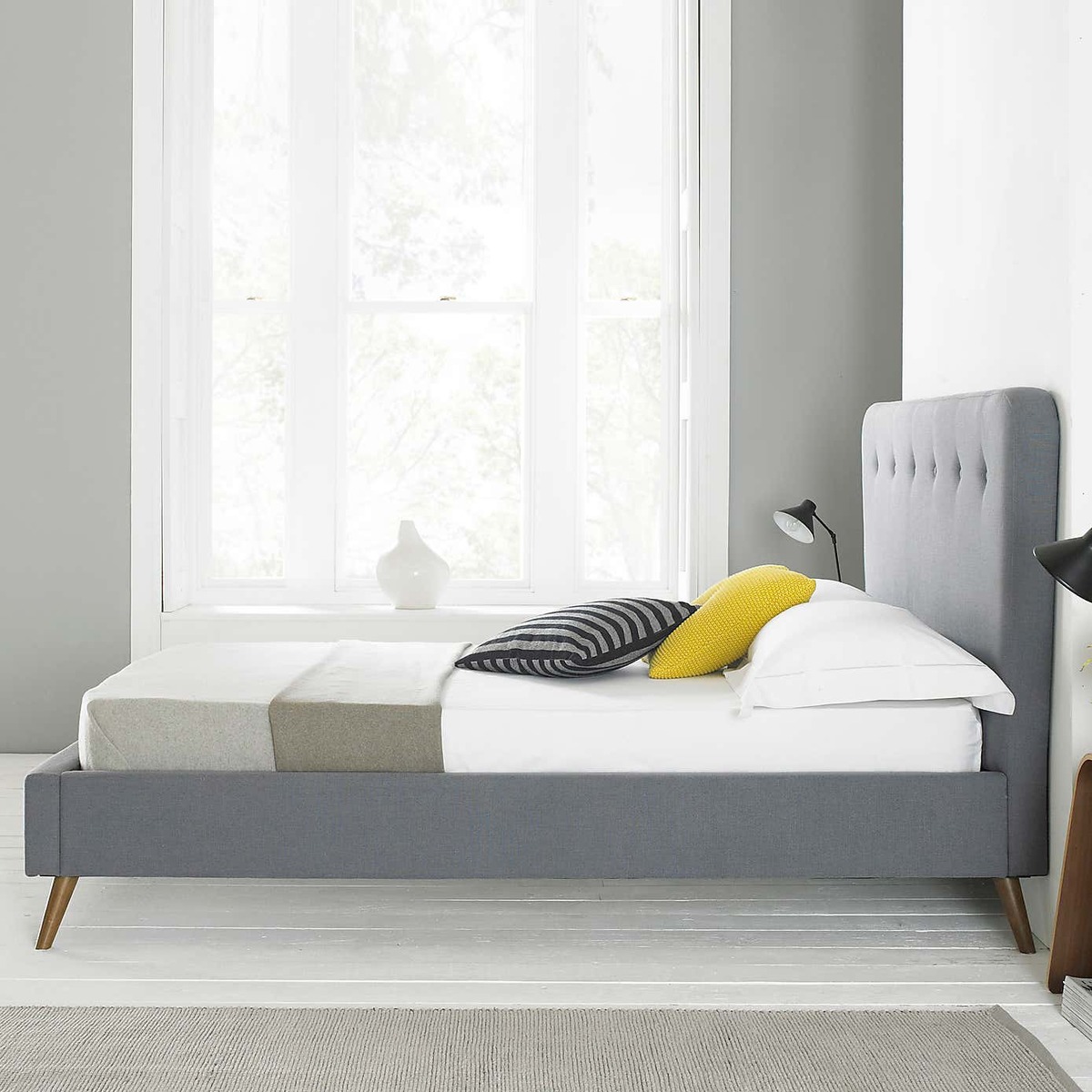 The grey Rio bed frame offers a versatile and contemporary look that works well in a variety of interiors, from minimalist and Scandi-inspired spaces to more eclectic or industrial settings. I love its understated style, which allows it to act as a neutral backdrop for bold bedding or colourful accessories. Practical styling tips include adding layered bedding with textured throws and cushions to soften the look, or pairing it with mid-century inspired bedside tables and lighting to create a cosy yet modern bedroom. Its muted tone makes it easy to incorporate into existing schemes, while the simple yet stylish design ensures it won’t overpower the room.