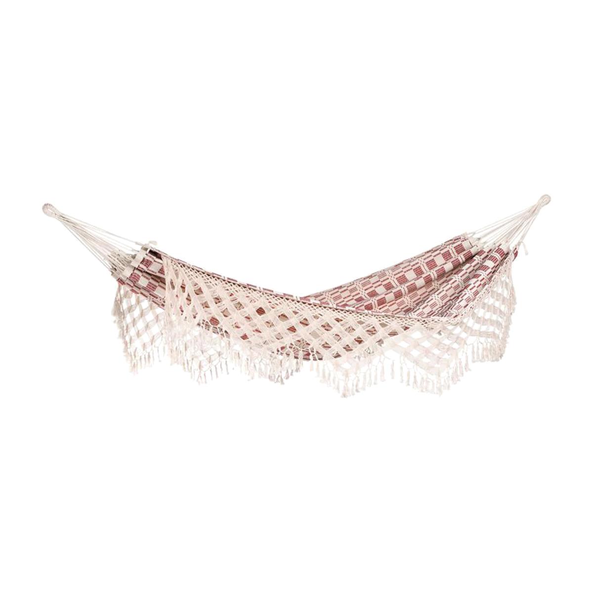 The Rio Bordeaux Family Sized Hammock is a super-luxurious hammock made from top quality cotton which has been hand woven into a jacquard design in a warm cream and red colour. The Rio Bordeaux Hammock also has a pretty veranda hem, which just adds to the chic look. An extra-large hammock, the Rio Bordeaux is 250 cm x 160 cm in size and holds up to 200 kg - plenty of room for your little family. What's more, it is beautifully soft and extremely comfortable.