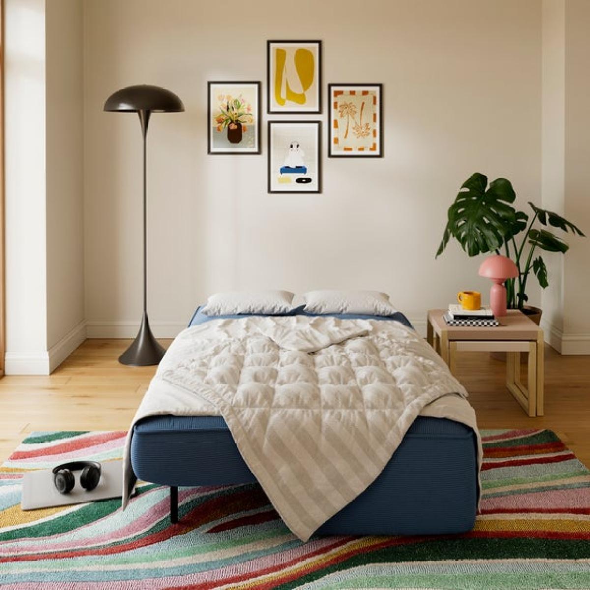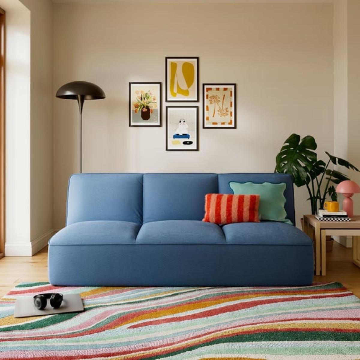 I love this sofa bed for its clean, contemporary look and practical versatility. It’s ideal for smaller living spaces or guest rooms, offering a comfortable seating area by day and easily converting into a bed for visitors. The simple design and neutral fabric make it adaptable to a range of interiors, from modern minimalist to cosy Scandinavian styles. For styling tips, consider adding textured cushions or throws in vibrant colours to inject personality, while keeping the surrounding decor minimal to let the sofa bed be a focal point. Pairing it with a soft, patterned rug - like in the image - can also help create a welcoming and layered space.
