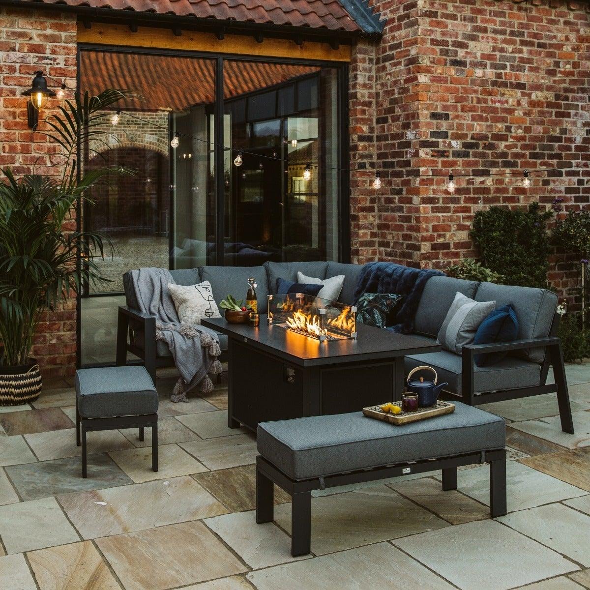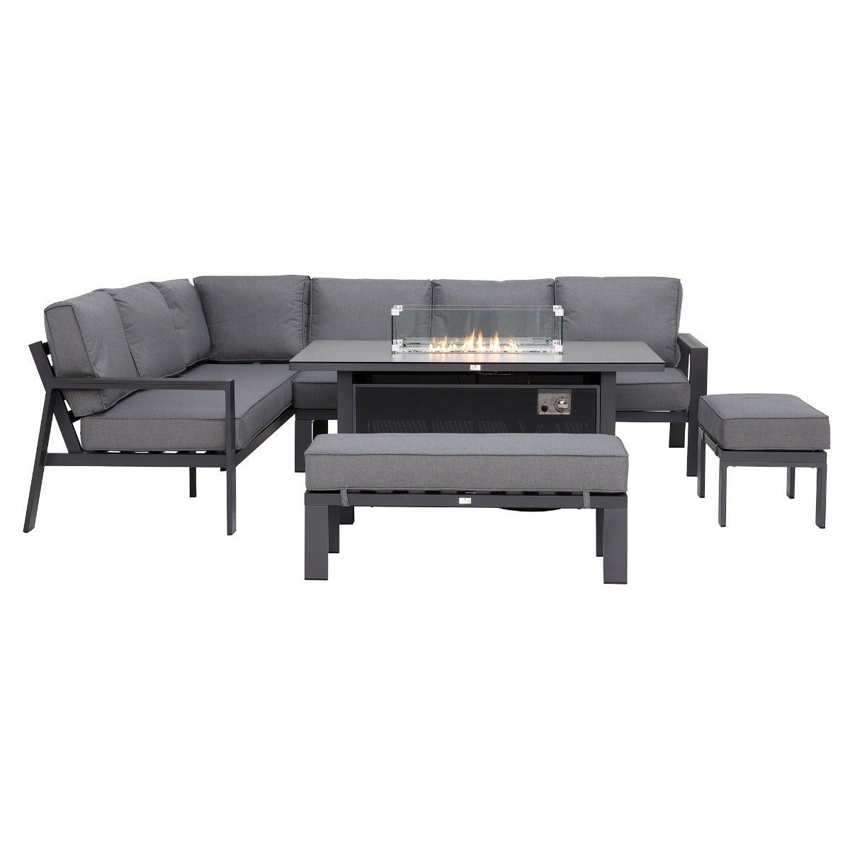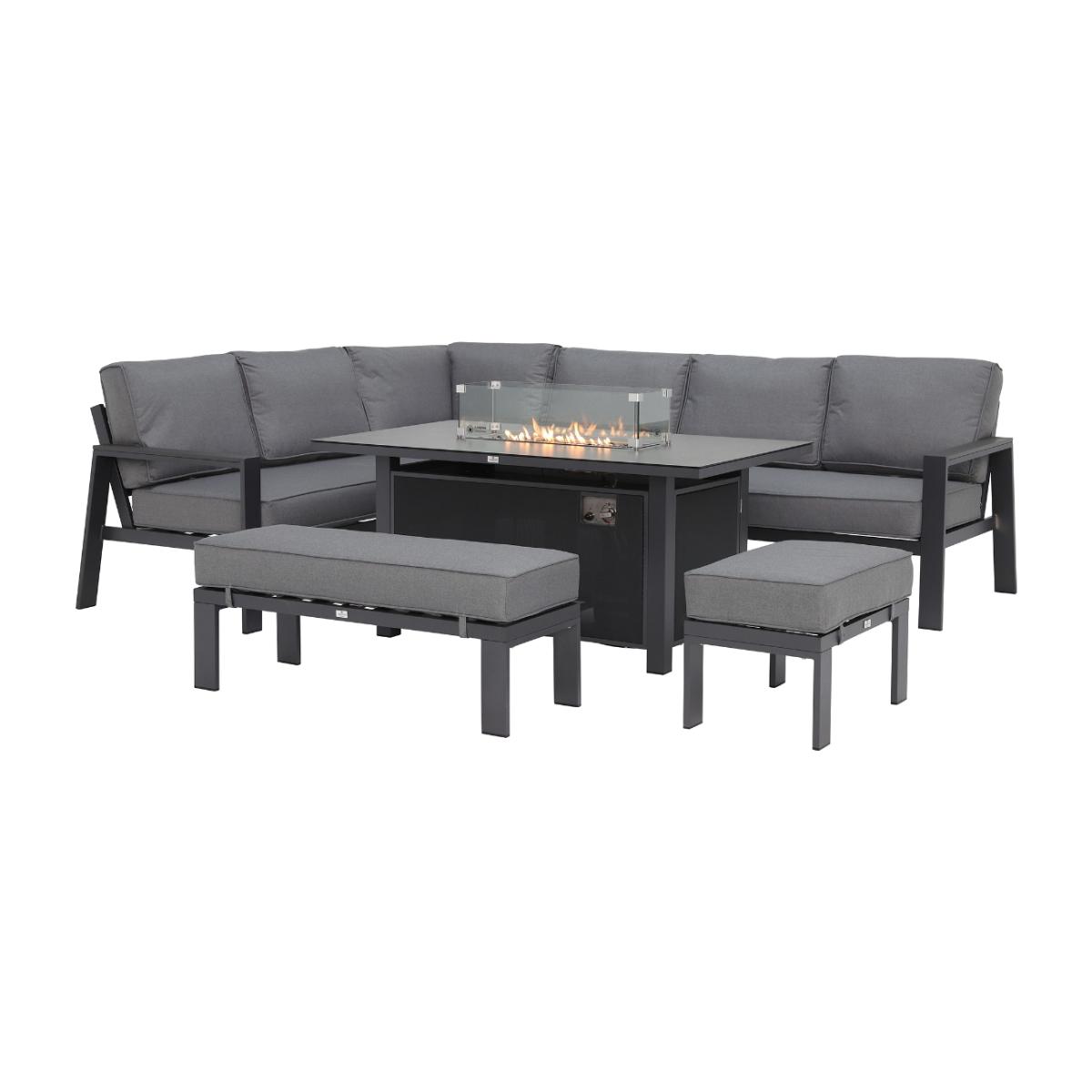 Rio L Shape Garden Corner Set with Fire Pit, Grey | Barker & Stonehouse