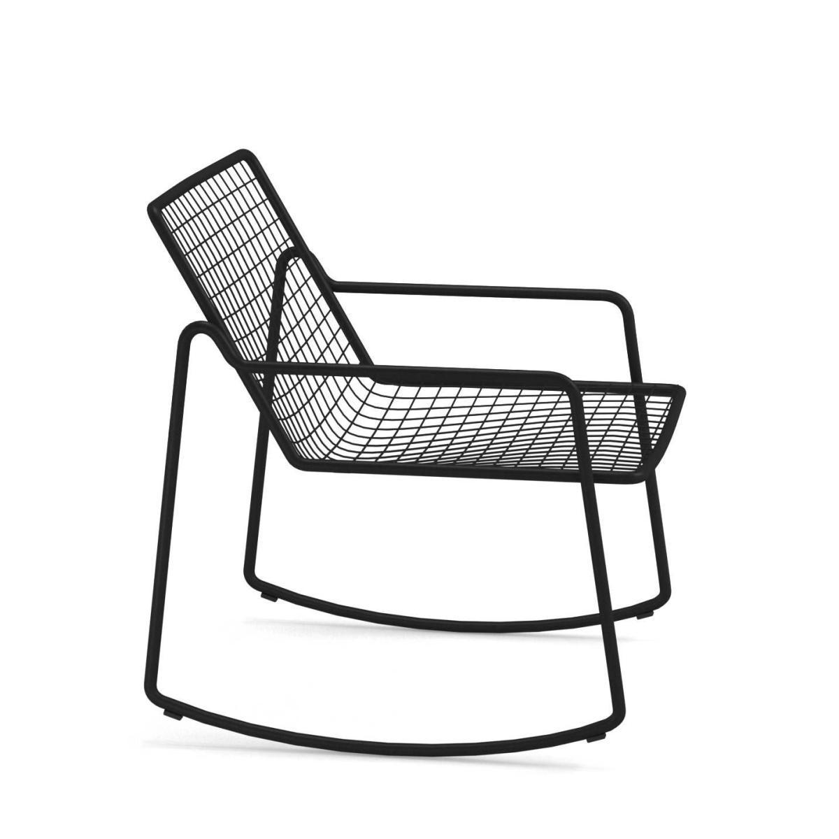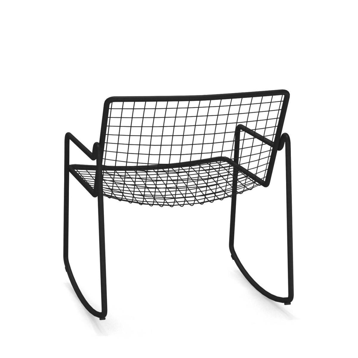 The “Rio R50” collection is a tribute to the Rio armchair, one of the historic models by Emu, which is celebrating its 50th anniversary this year. The Rio armchair was produced between 1960 and 1970. The retro grace of this mesh metal collection is brought up to date by the use of modern materials and manufacturing techniques. The aerial silhouette of this rocking chair represents a minimal, refined graphic sign. The metal mesh makes the volume of the chair intangible. With its simple, essential lines, Rio 50 finds its place in different environments, from the house to the garden. With more than fifty years’ experience in metalworking, Emu expresses its style in gardens and on terraces all around the world. Emu creations have become icons in the world of "made in Italy" design and quality. The Rio 50 rocking chair consists of an ASFORM steel tube structure, high-quality steel with advanced mechanical capacities and high weight-resistance. The steel tube is characterised by a clearly visible "R" in the area where the seat joins the backrest. All its structural welds are carried out using Ming technology, which provides better resistance to stresses and reduces the risk of rust while, for greater precision, the steel wire mesh is electro-welded to the structure. As with all EMU steel products, a cataphoresis pre-treatment is applied, followed by the application of a thermosetting powder paint. So the product is covered with a layer of paint of uniform thickness, offering a high degree of adhesion and resistance. The presence of nylon caps at the end of the feet helps protect the product and make it easier to move around.
