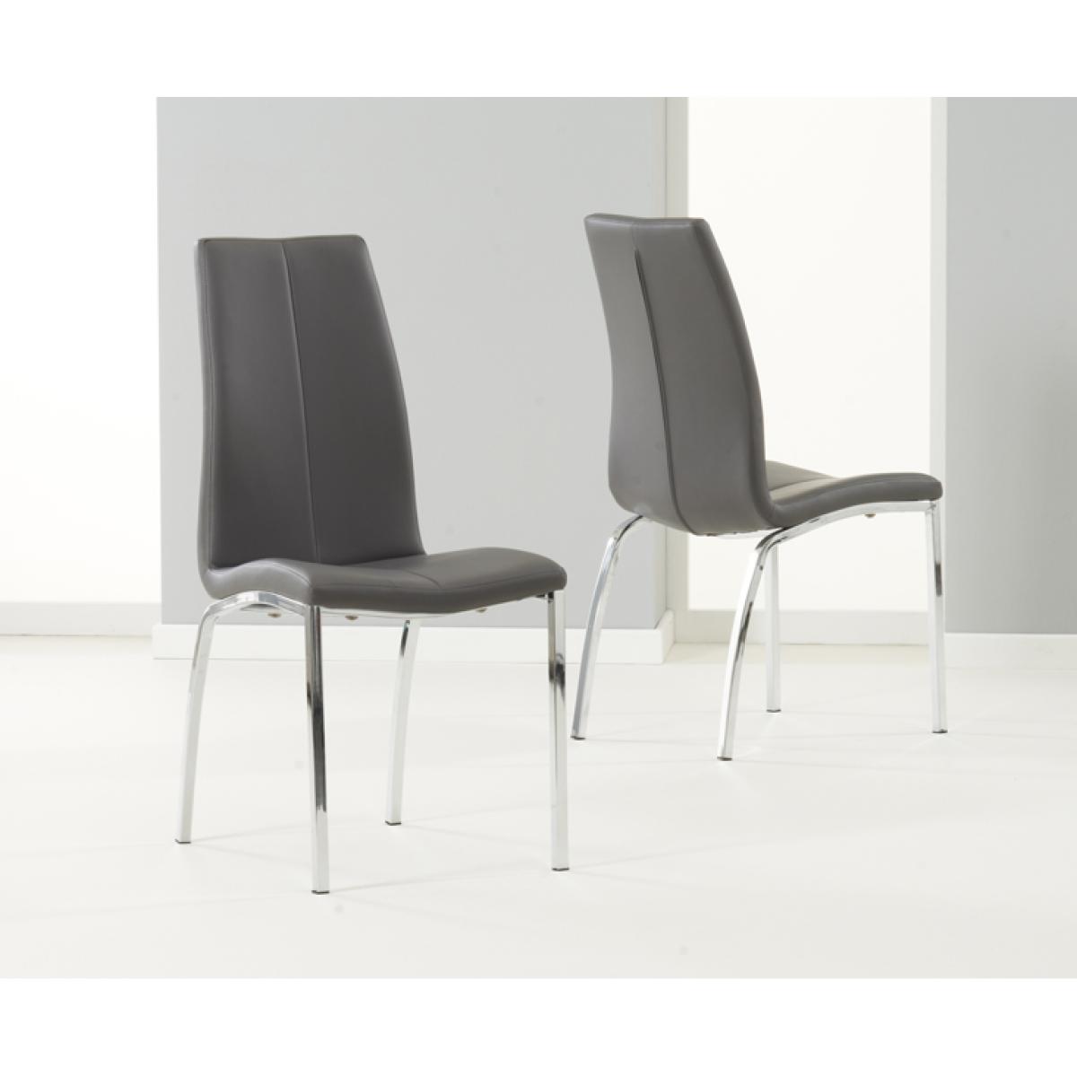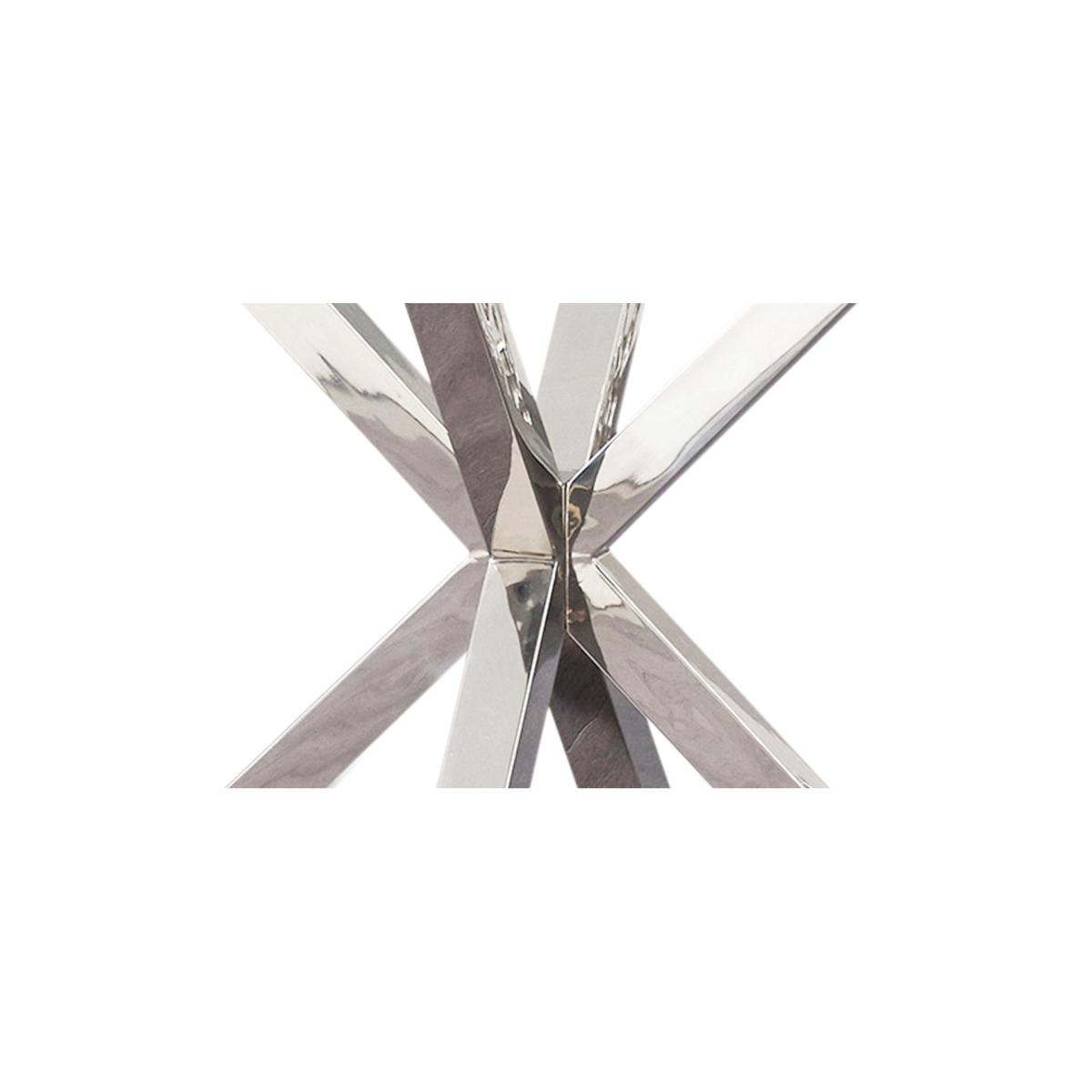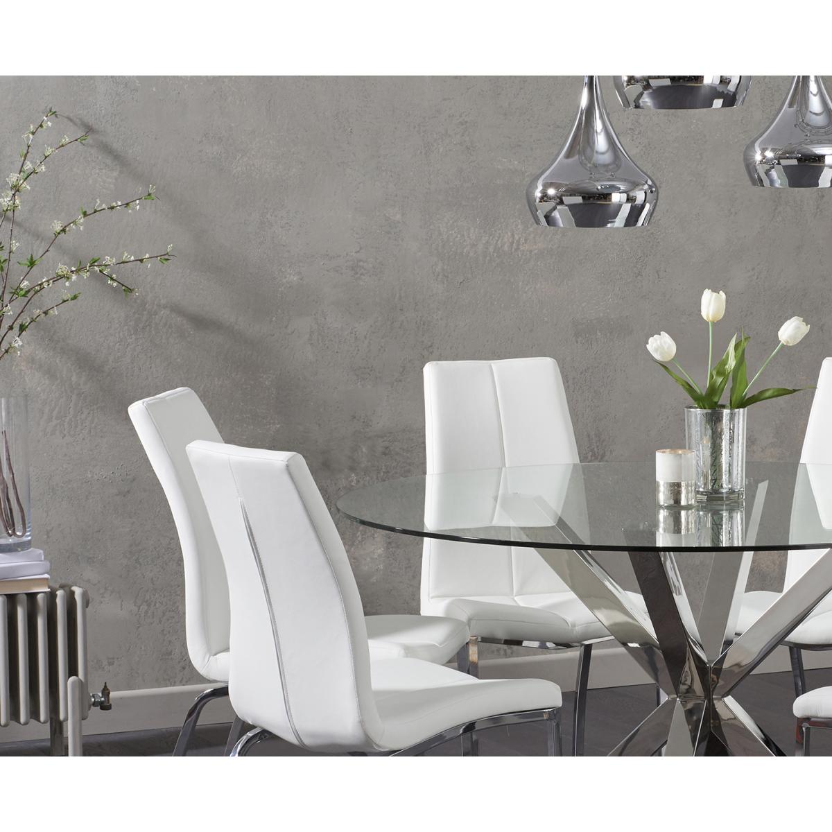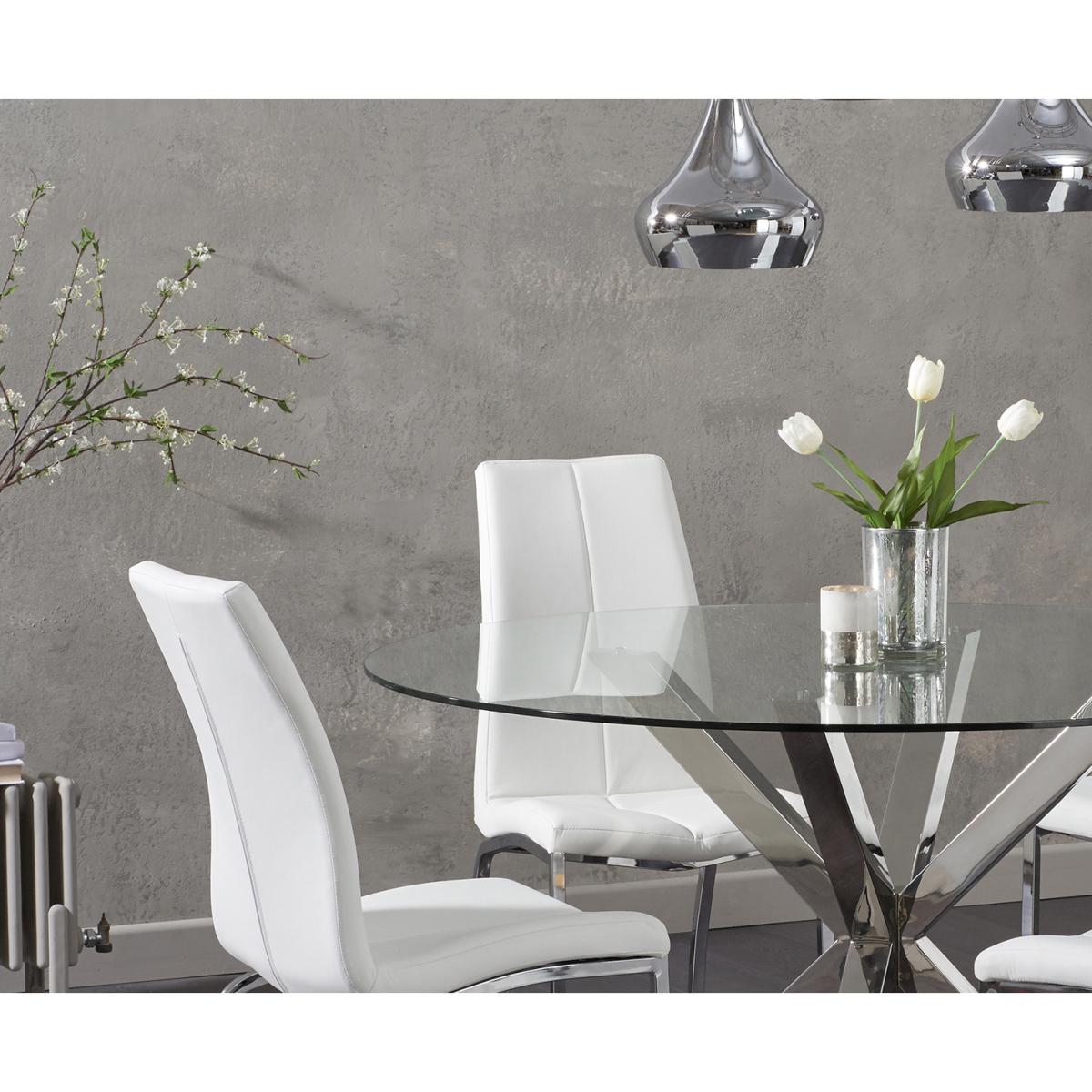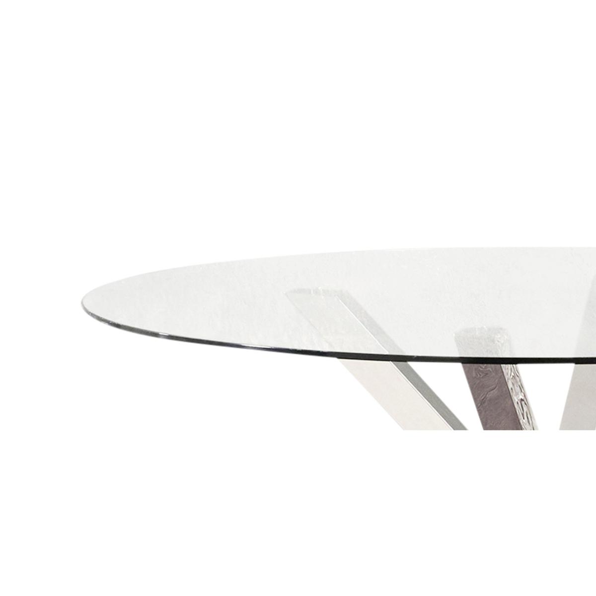 A unique shape makes this dining set a must have. With stunning glass top and gorgeous Cavello chairs this table will be the talk of the party