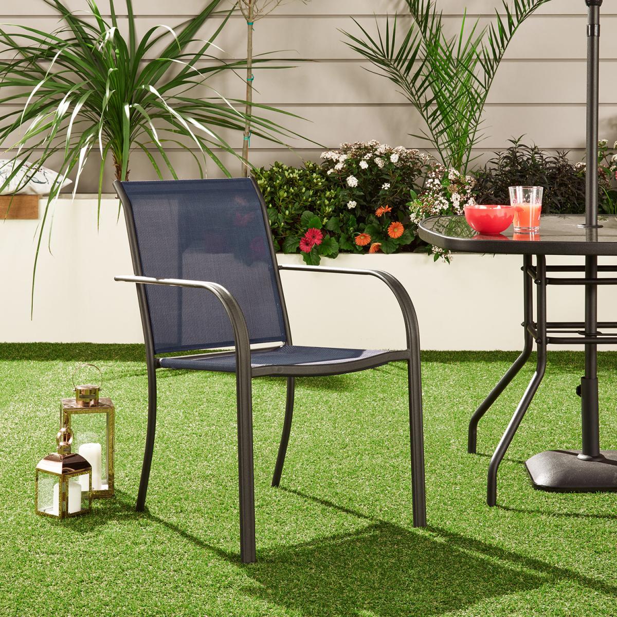 I love this garden chair for its sleek, contemporary look and comfortable sling design, making it ideal for relaxed outdoor dining or lounging. Its navy colour is versatile and pairs well with both modern and traditional garden setups. A great styling tip is to complement it with cushions in contrasting or complementary colours to add comfort and visual interest. It works particularly well in minimalist or coastal-inspired gardens, where clean lines and simple colour palettes are key. For practical styling, group a few around a dining table, or mix with other metal or wood furniture to create an inviting outdoor space that feels both stylish and functional.