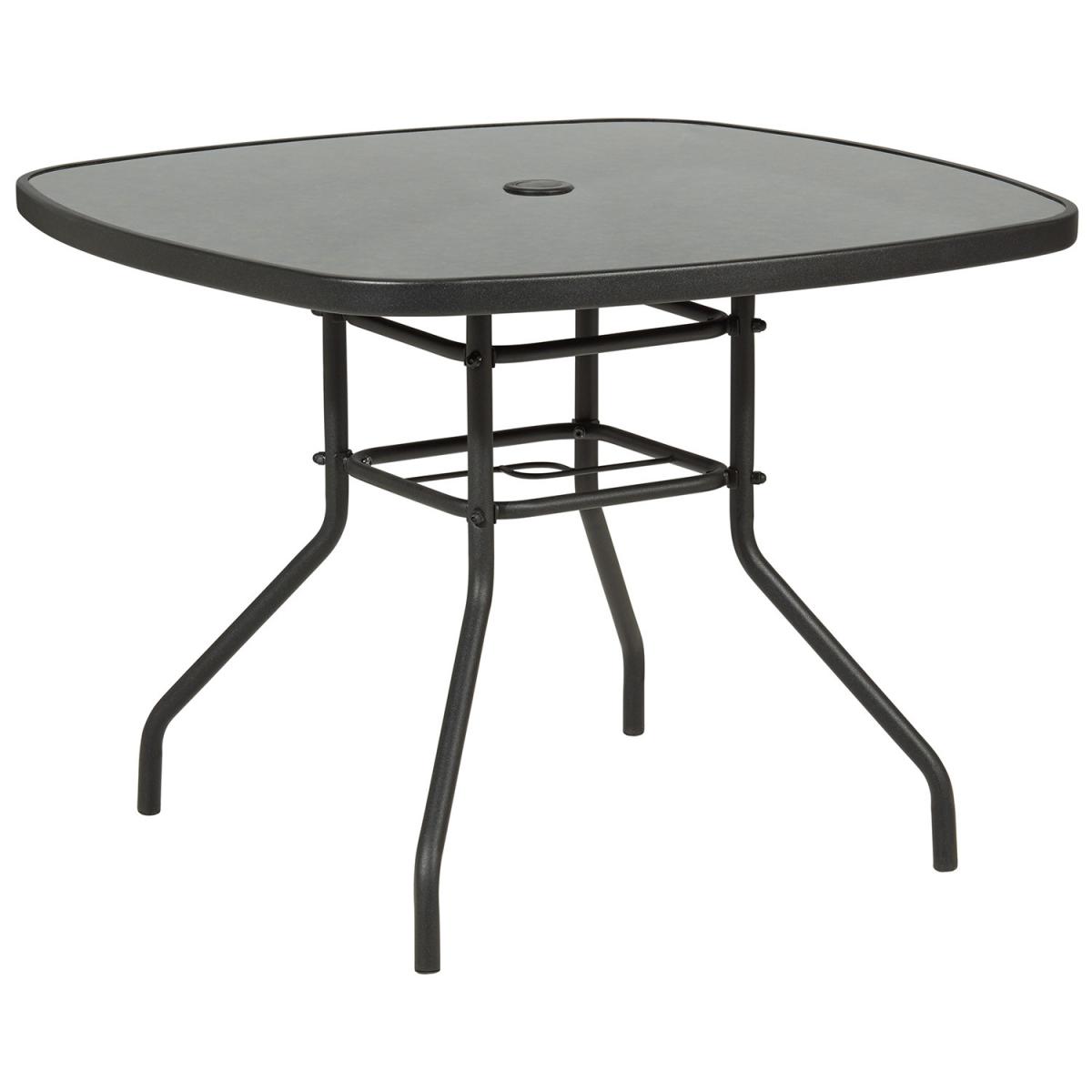 The perfect piece for your garden, this Rio Square Glass Top Table is a great place to gather around on a sunny day. Perfectly matching with a set of Rio garden chairs, this table is made from durable powder coated steel for extra weather resistance, is compatible with a parasol and comfortably seats four people. Easy to assemble, this garden table has 5mm tempered glass and is great for hosting barbecues and summer parties.