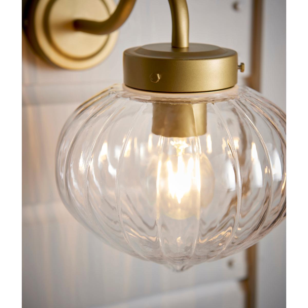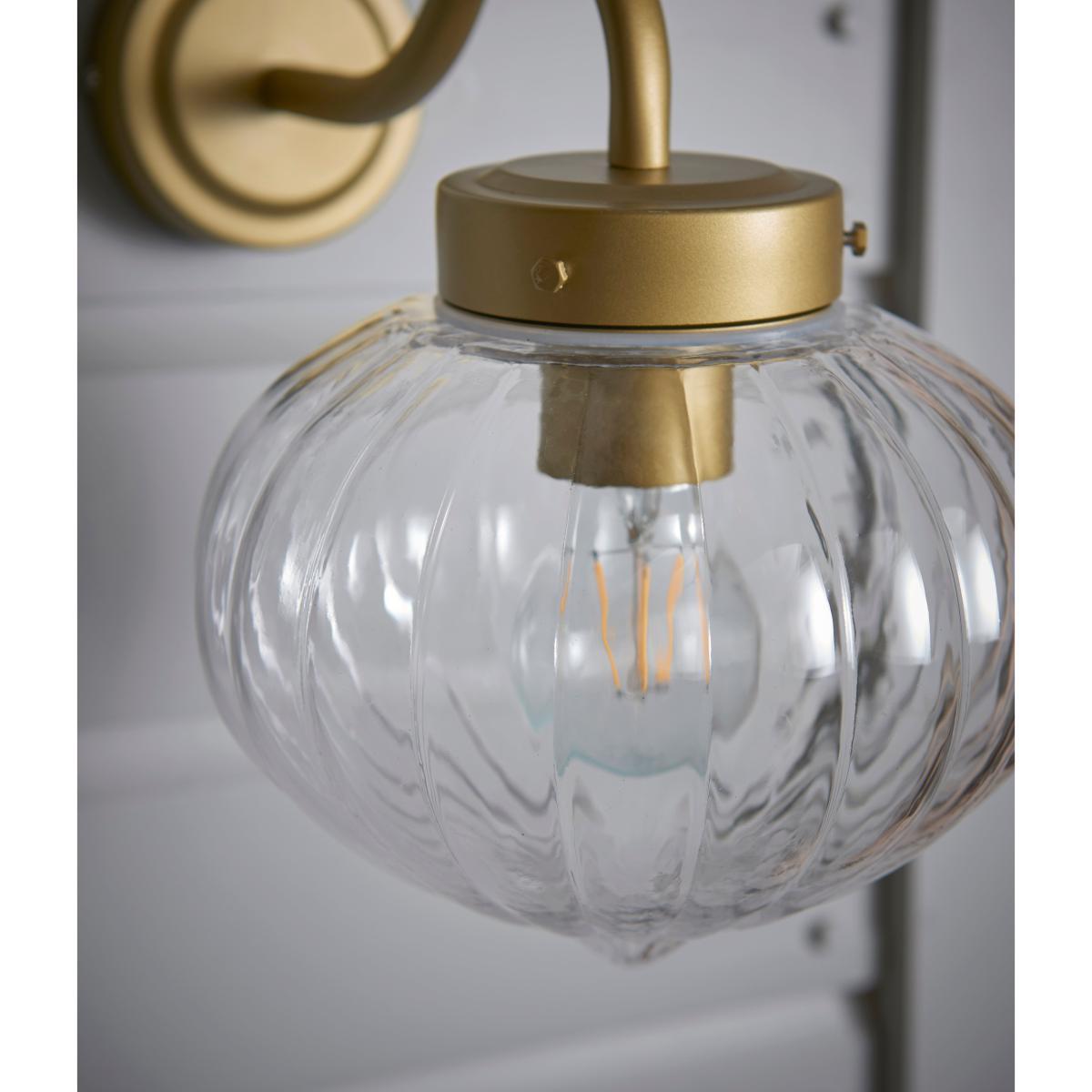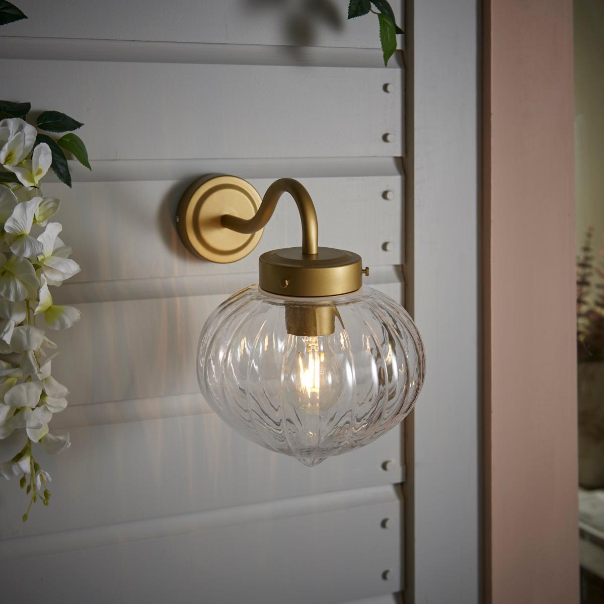 With it's gorgeous timeless design, the Rio Voyager outdoor wall light would make a stunning statement piece for any outdoor space. Styled with antique brass coloured curved arm and fittings, this light is characterised by its beautifully shaped, ribbed clear glass shade, and features an IP44 rating making it perfect for outdoor use.