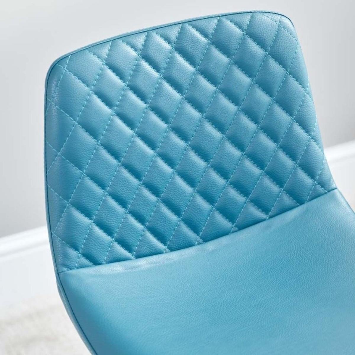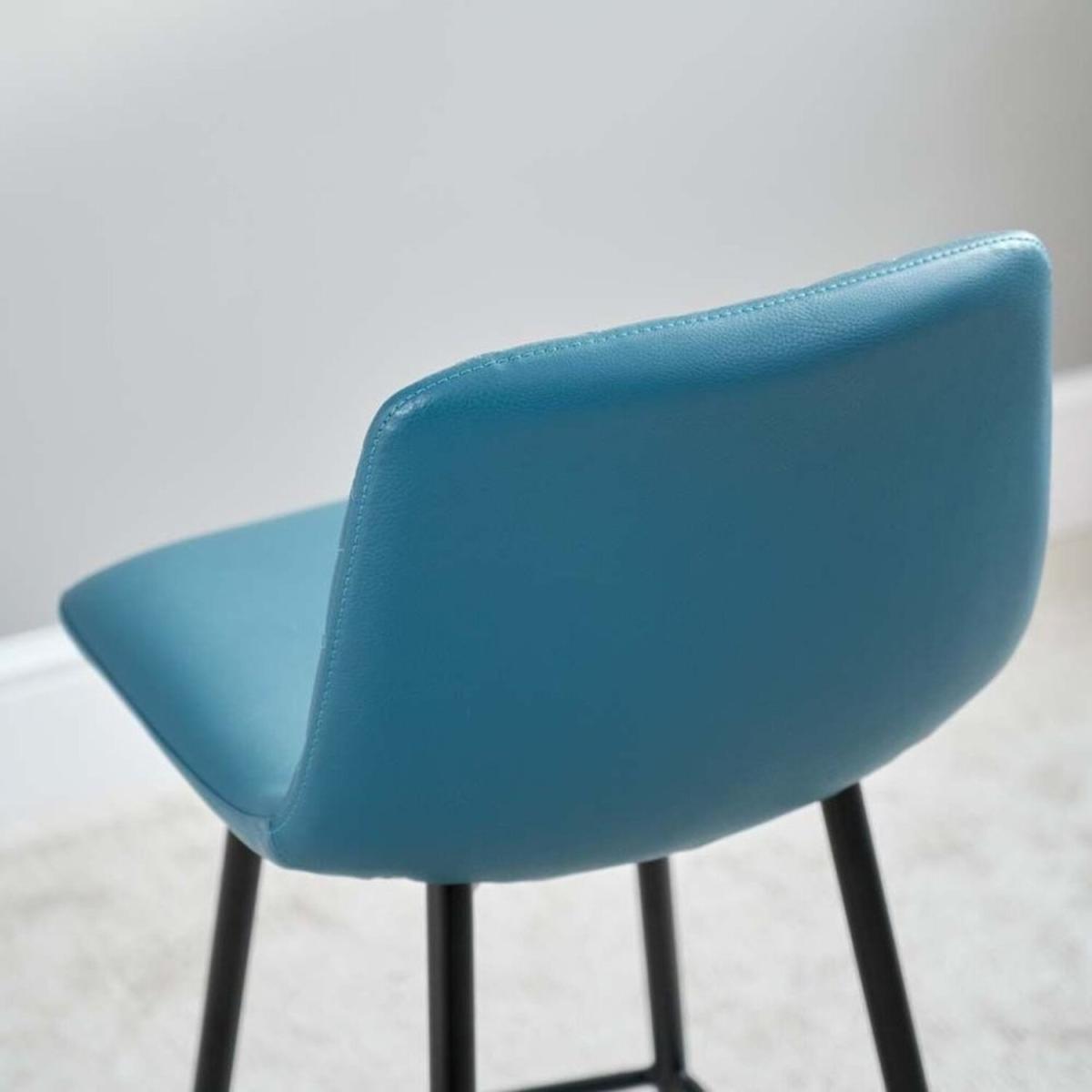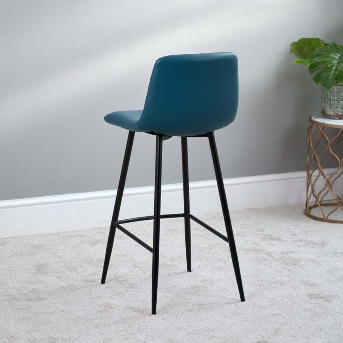 I really like this set of blue bar stools for their modern, streamlined look and the vibrant teal tone which adds a lively pop of colour to any space. The quilted backrest provides a touch of texture that can elevate both casual and more formal interiors. They work especially well in contemporary kitchens or breakfast bars, but could also be styled into eclectic or vintage-inspired schemes with the right accessories. Practical tips would include pairing them with a light, neutral worktop to make the colour stand out, or combining with other teal accents for a cohesive look. Their height makes them versatile for various counter heights, and their padded seats offer comfortable seating - making them both stylish and user-friendly.