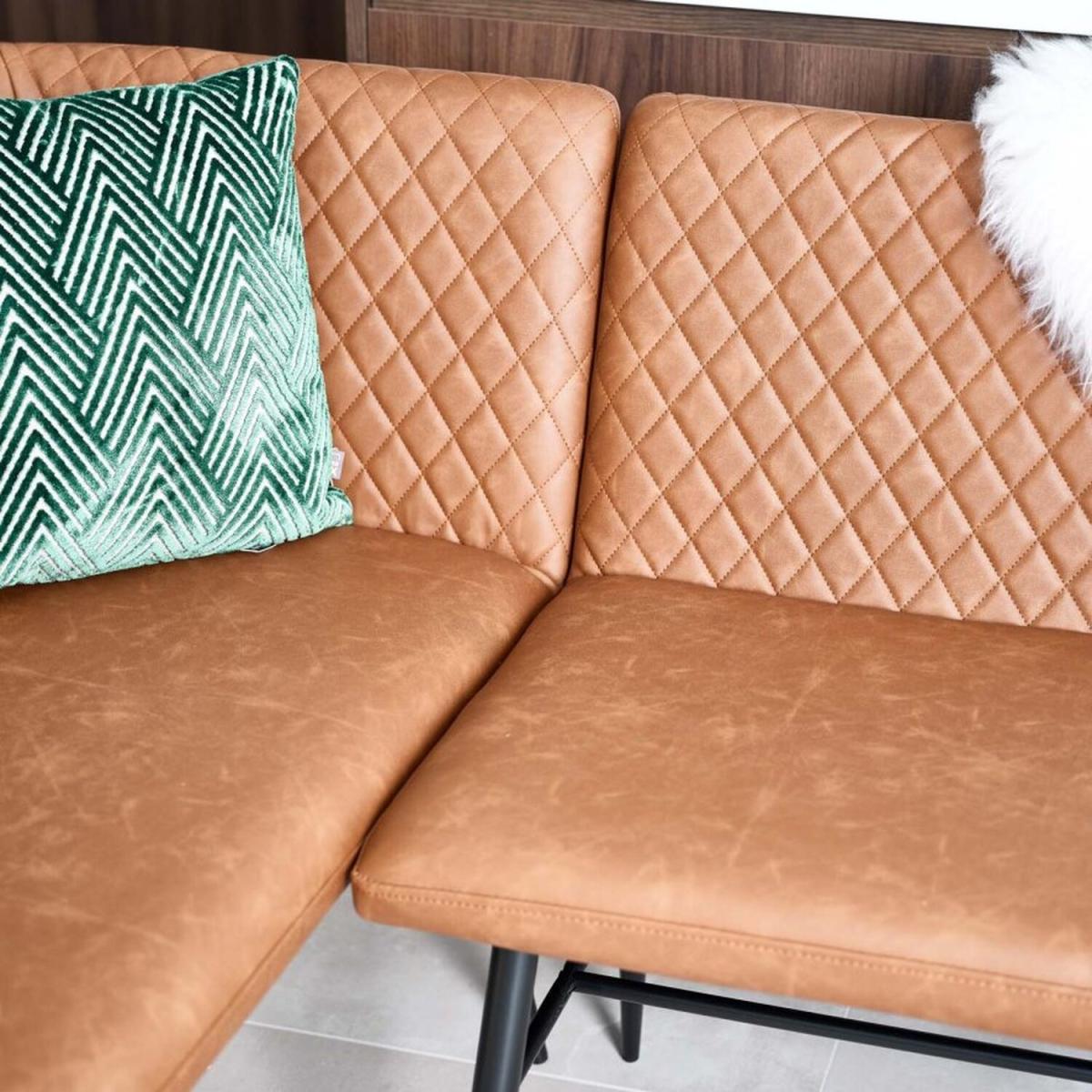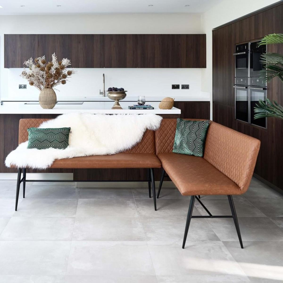 The Ripley Corner Bench in a sophisticated faux leather upholstery is a stylish addition to your dining area. The corner dining bench is made up of two interlinking sections, giving you plenty of seating around your table. The corner bench matches perfectly with the Ripley dining chair and low bench with no back.