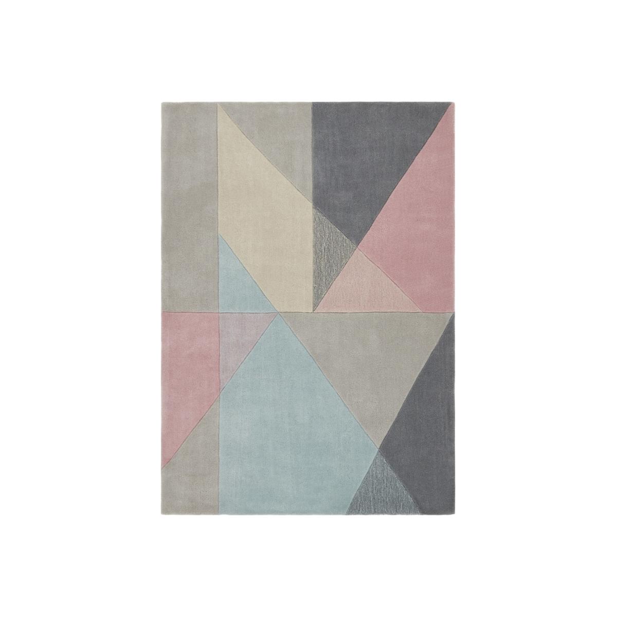 I love this rug for its contemporary geometric design and versatile colour palette, which seamlessly blends pink, blue, and grey tones. It works particularly well in modern living rooms or bedroom schemes where you want to introduce some visual interest without overwhelming the space. The size makes it adaptable for under a coffee table or as a statement piece in a smaller lounge. For styling tips, consider pairing it with neutral furniture to let the colours pop, or incorporate complementary accessories like cushions or throws in similar shades to create a coordinated look. Its bold pattern also balances well with more minimalist or Scandinavian interiors, adding warmth and personality without clutter.