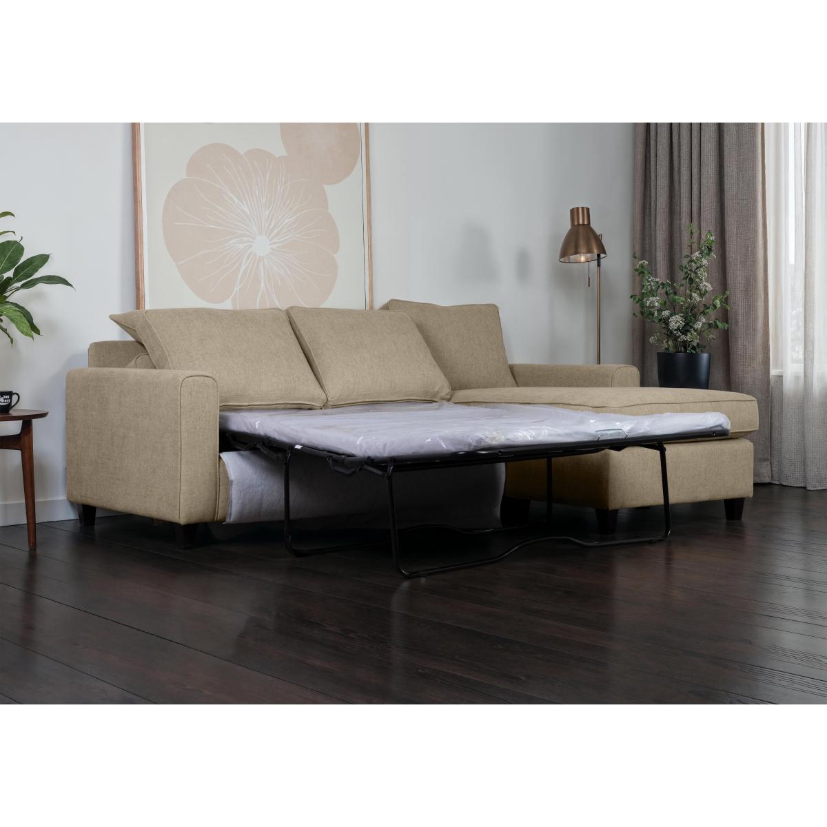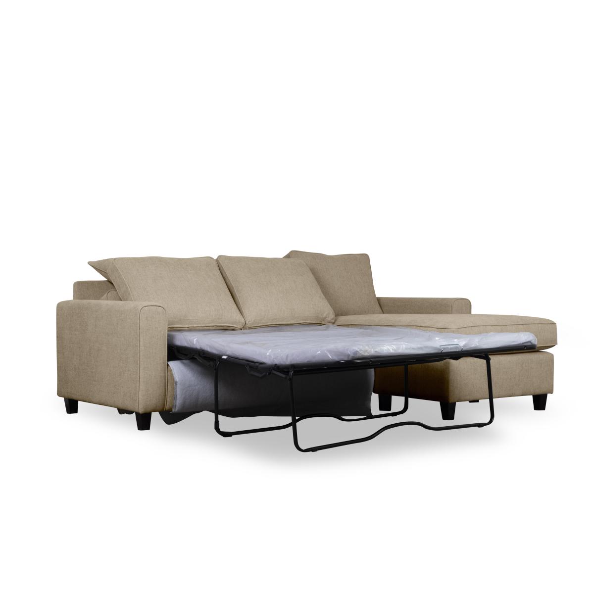 Looking for elegant modern sofa style with a multitude of comfort features? Our handcrafted and UK-made Ripon collection ticks all the boxes. Clean-lined in style, the sofas, sofa beds and chairs in this range combine sophisticated style with superb support. Seats and backs are sprung, and seat and back cushioning are reversible for longer-lasting comfort. The combination of foam seat cushions and fibre-filled back cushions, plus soft arm bolsters and accent cushions, guarantees effortless relaxation. Offered in a versatile range of sofa sizes and shapes, including a three-seater reversible chaise end sofa and two sizes of sofa bed, the Ripon range is exclusively available at Furniture Village. The understated modern style of our handcrafted Ripon three-seater chaise end sofa bed is perfectly balanced by comfort features that include a sprung seat and back, foam mattress and reversible cushions. Why you'll love it Elegant, stylish and modern, our Ripon range is also wonderfully comfy. This clean-lined 3-seater chaise end sofa bed suits both modern and traditional settings. The chaise end is actually a storage footstool which can be placed on either side. Easy 3-fold sofa bed mechanism opens in seconds. With a body-hugging foam guest mattress. This chaise end sofa bed is made to last with reversible seat and back cushioning. Sprung seats and back ensure excellent all-over sofa support. With arm bolsters and 2 coordinating scatter cushions. Choice of sophisticated colours for the soft woven fabric upholstery. Oak legs have a stylish dark finish. Handcrafted in the UK just for Furniture Village. This chaise end sofa bed is part of our Ripon range. What you need to know Medium comfort level. Seat suspension: 9-gauge steel spring. Seat cushioning: foam. Seat cushioning is reversible. Back suspension: webbing. Back cushioning: fibre. Back cushioning is reversible. Arm bolster cushioning: fibre. Mattress: foam. Please follow sofa bed opening instructions carefully. Forcing the mechanism will cause damage. This sofa bed’s ratchets will make a clicking sound while being adjusted. This is not a fault. Upholstery will be slightly relaxed to facilitate sofa bed mechanism. Back and feet are removable. Plump, turn and rotate cushions regularly. Some fabrics can show wear on areas of more use or in direct sunlight. Clean regularly using a soft brush or vacuum with the curtain attachment. Deal with any spills promptly. Professional cleaning advised for oil- and grease-based stains. Please read our upholstery care guide for more advice. Item code: RIPO3RSBFERN-001
