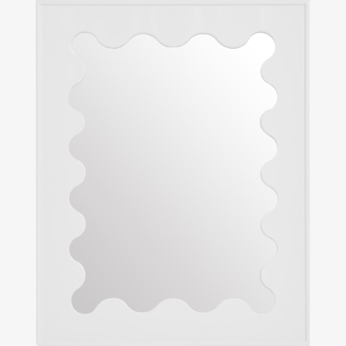 I love the ripple effect on this mirror - it adds a subtle yet distinctive visual interest without being overpowering. It's versatile enough to work well in contemporary spaces, such as bathrooms or hallway areas, but can also add a soft touch of glamour to more eclectic or minimalist interiors. For practical styling, consider placing it above a console or in an entryway to enhance light and create a sense of space; pairing it with neutral surrounds allows the mirror's playful edges to stand out, while in bolder rooms, it complements striking decor choices. Its shape lends itself to a variety of interiors, providing both function and a touch of modern charm.