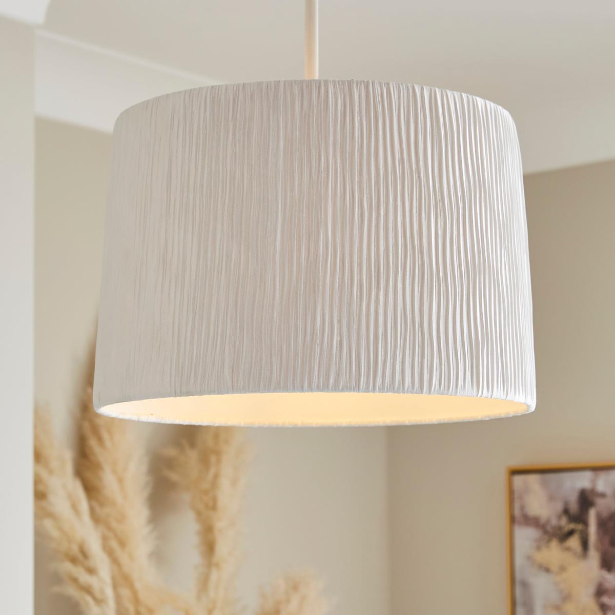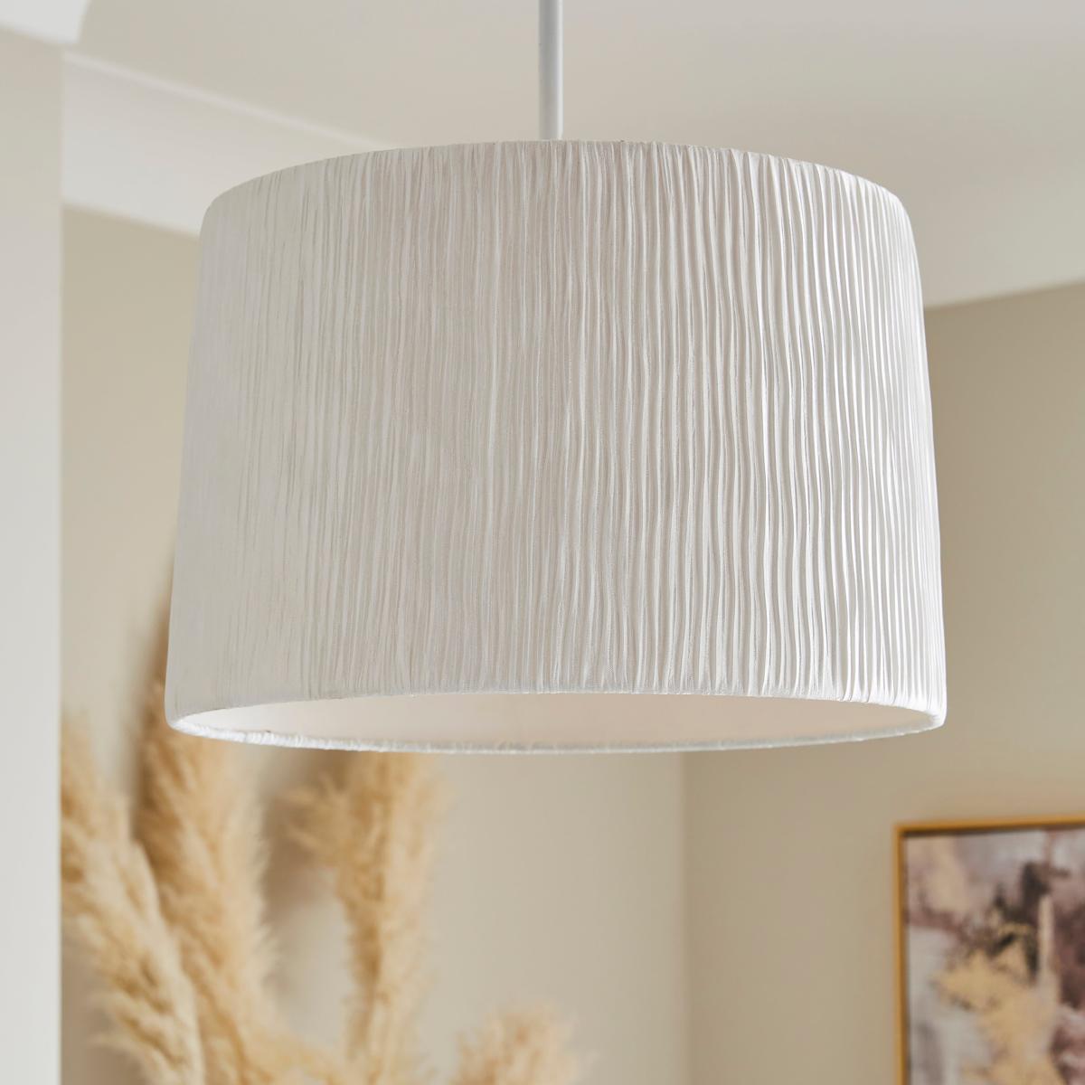 I love this shade for its subtle texture and versatile off-white hue, which makes it a practical yet stylish choice for a variety of interiors. The Ripple Satin Shade works particularly well in contemporary or minimalist spaces, adding a soft visual interest without overwhelming the room. It’s great paired with modern pendant or table lamps, cosy living areas, or even neutral-toned bedrooms. For styling tips, I recommend keeping the surrounding decor simple to let the ripple detail stand out, and ensuring the bulbs used complement its warm, diffused glow. It’s a timeless piece that adds a refined touch, perfect for elevating both classic and modern schemes.