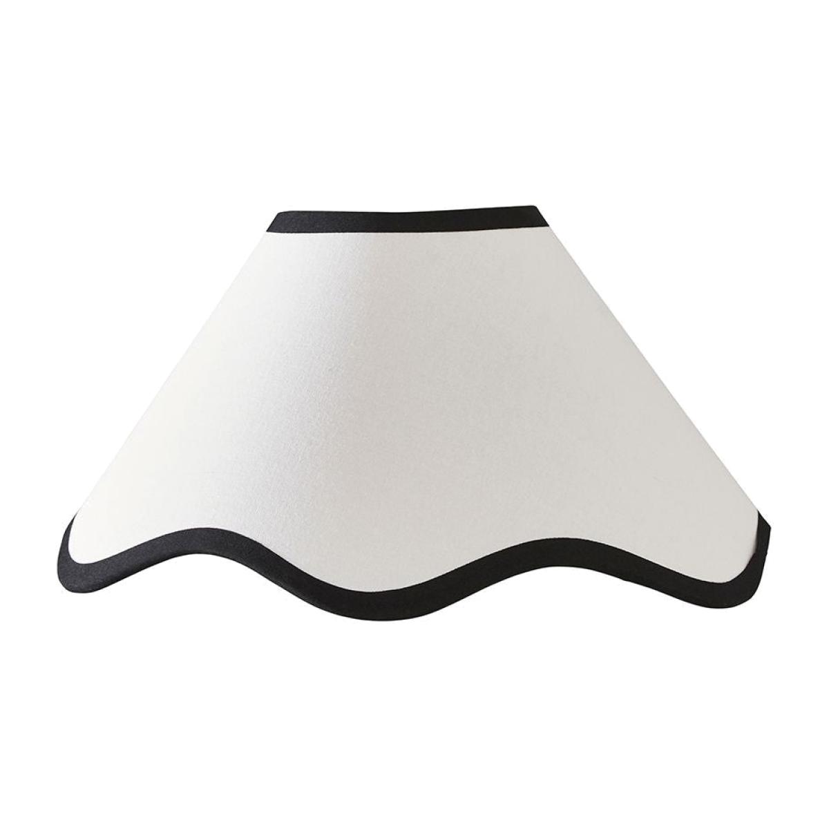 Bring effortless style to your space with the Ripple Shade Off White And Black 32cm—. Crafted with a refined ripple-textured fabric in soft off-white, this shade gently diffuses light for a warm, ambient glow. The crisp black scalloped trim adds a bold, modern edge, making it a perfect fit for contemporary and classic interiors alike. Perfect for table lamps, floor lamps, or pendant fittings, this versatile shade suits a wide range of interiors—from minimalist and modern to classic and cozy. At 32cm, it’s ideally sized to make a stylish statement without overpowering your space. Bring effortless style to your space with the Ripple Shade Off White And Black 32cm—. Crafted with a refined ripple-textured fabric in soft off-white, this shade gently diffuses light for a warm, ambient glow. The crisp black scalloped trim adds a bold, modern edge, making it a perfect fit for contemporary and classic interiors alike. Perfect for table lamps, floor lamps, or pendant fittings, this versatile shade suits a wide range of interiors—from minimalist and modern to classic and cozy. At 32cm, it’s ideally sized to make a stylish statement without overpowering your space.