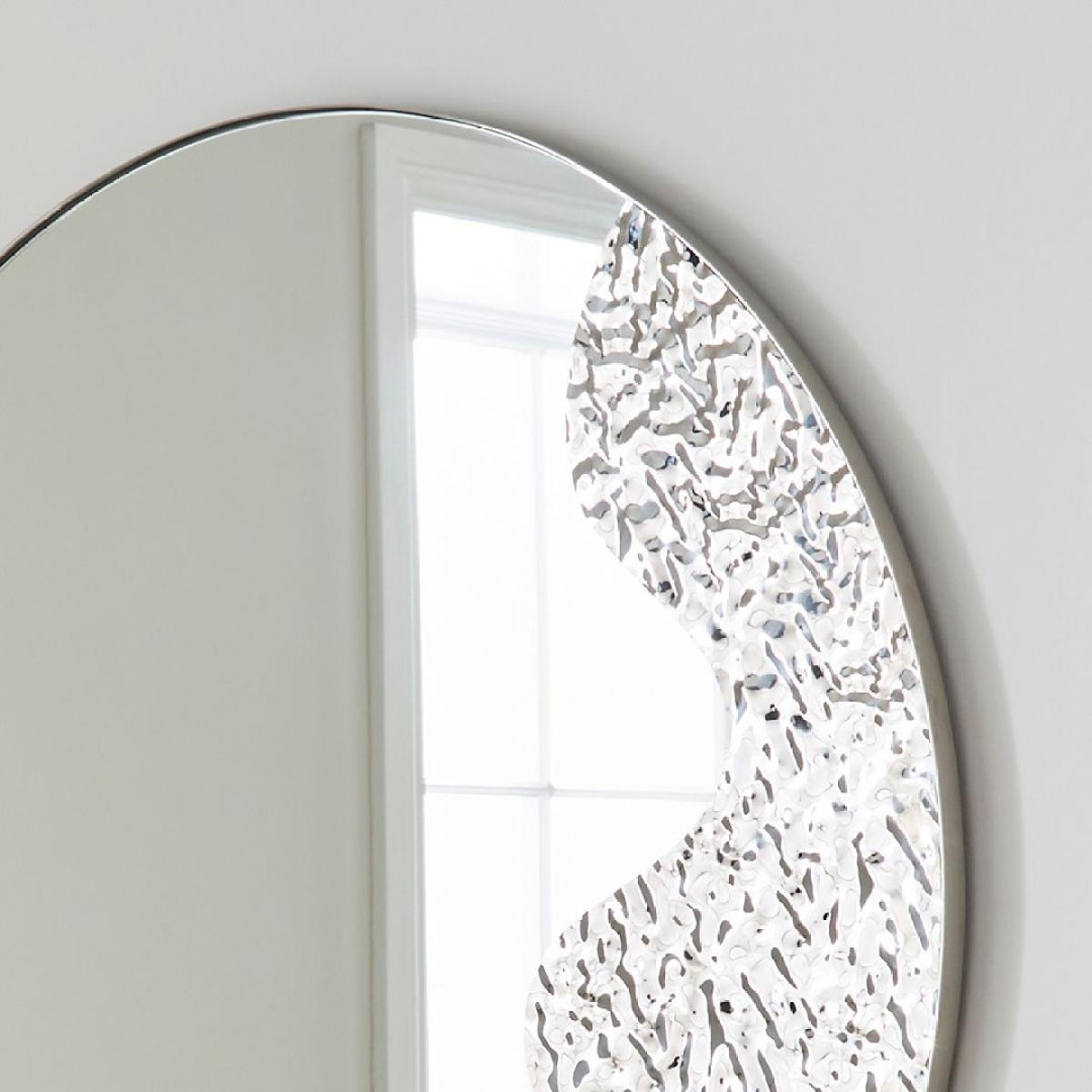 Ripple round silver mirror, featuring a minimalist frame and ripple textured detailing. Add a touch of contemporary elegance with the Ripple round mirror. Measuring 91.5cm across, it features a slim, minimalist silver frame and eye-catching ripple-textured detailing on the mirror glass itself. Subtle yet striking, it creates visual interest while bouncing light beautifully around the room. Ideal for modern living spaces, bedrooms or entryways. Ripple round silver mirror, featuring a minimalist frame and ripple textured detailing. Add a touch of contemporary elegance with the Ripple round mirror. Measuring 91.5cm across, it features a slim, minimalist silver frame and eye-catching ripple-textured detailing on the mirror glass itself. Subtle yet striking, it creates visual interest while bouncing light beautifully around the room. Ideal for modern living spaces, bedrooms or entryways.