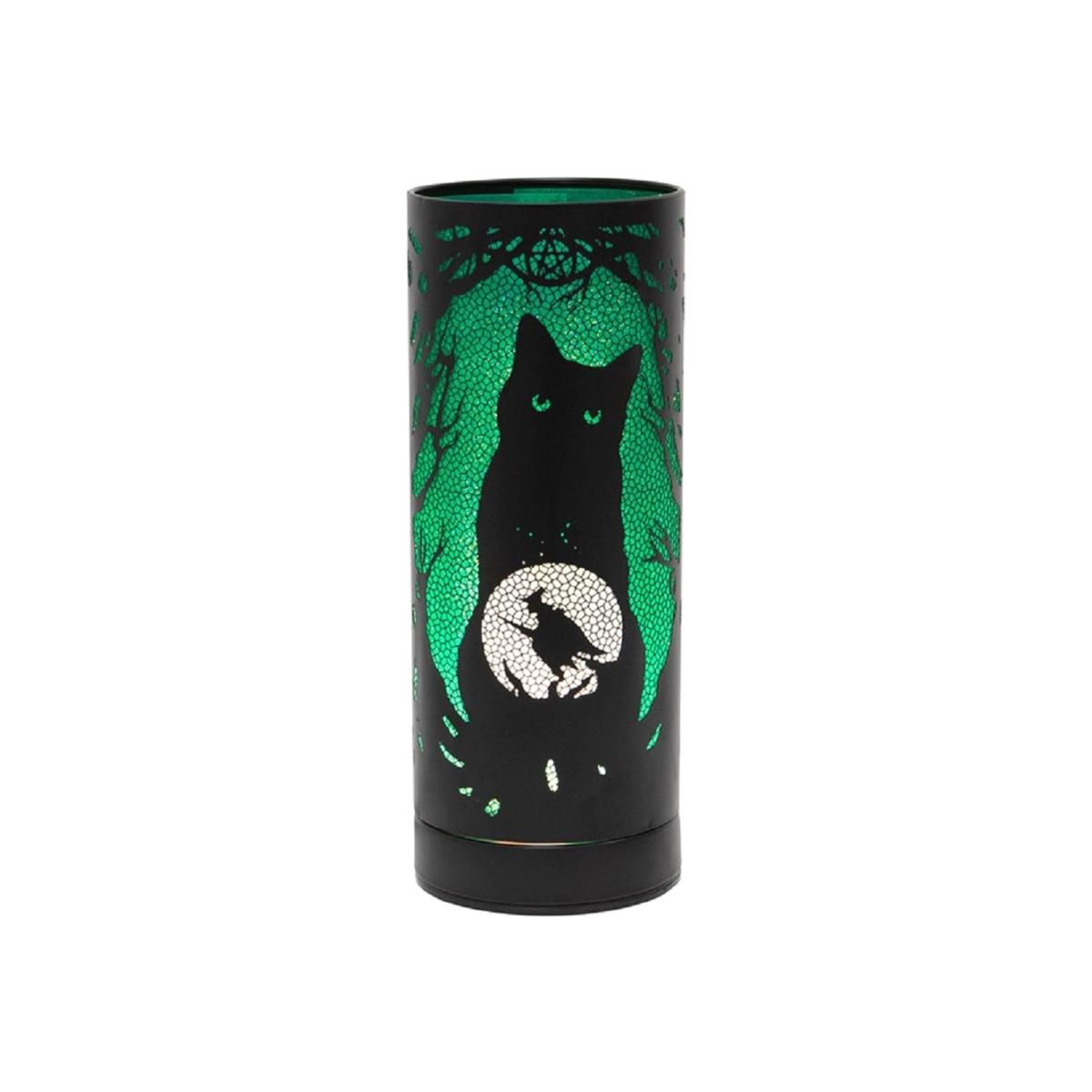 Lisa Parker's stunning 'Rise Of The Witches' artwork creates the perfect focal point for this aroma lamp. A black silhouette of a cat and her crystal ball overlays a green background that is illuminated from behind. Use with fragrance oil or wax melts to gently fragrance the home. LED light and USB plug. Officially licensed.