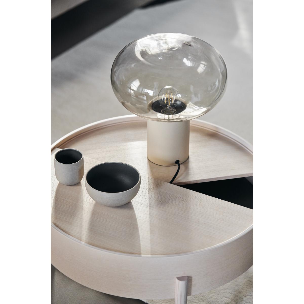 Rising table lamp 35. 5 cm from Swedish Scandi Living is a table lamp with a minimalist Scandinavian design and a cylindrical iron lamp base and a softly shaped glass lampshade. Place this table lamp on, for example, a windowsill or on a side table and let the light spread over the room.