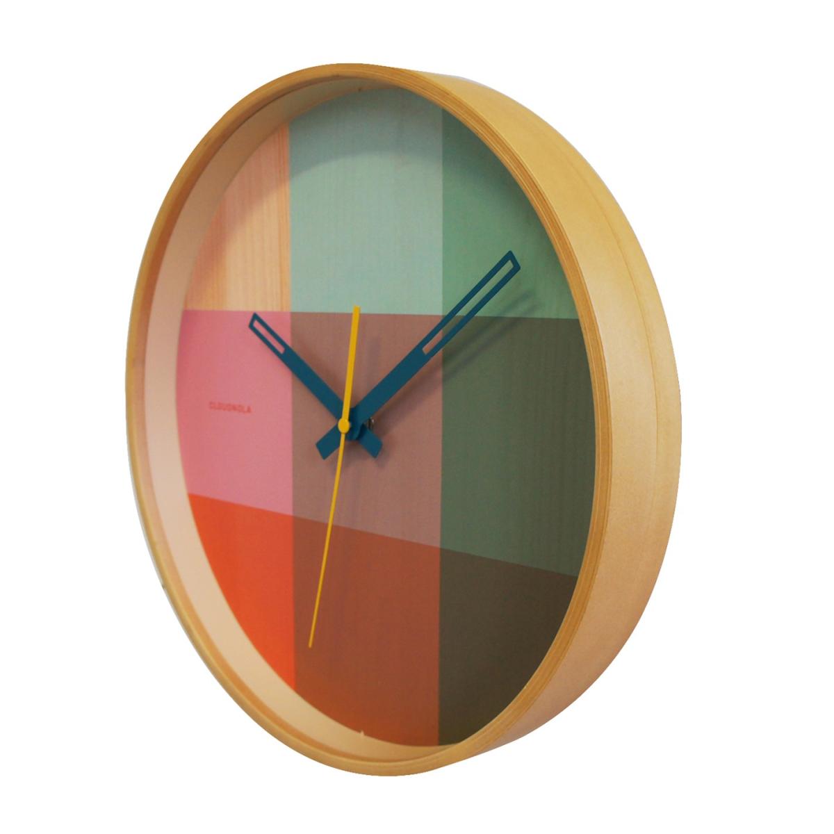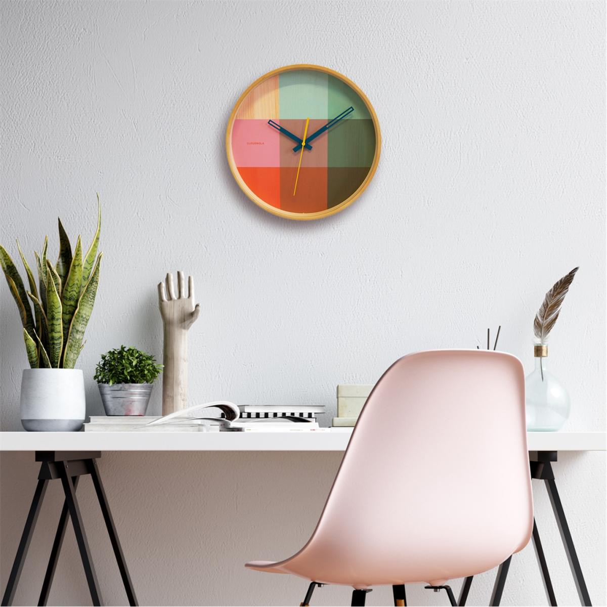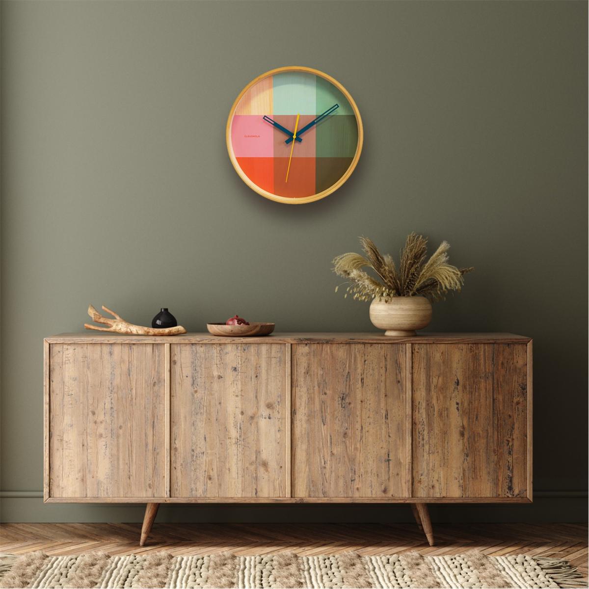 I love this wall clock for its bold, colourful design and versatile style. It works particularly well in contemporary or Scandinavian interiors where clean lines and playful colour palettes are key. The geometric patchwork face makes it a statement piece that can anchor a room without overpowering it. Practical styling tips include placing it above a neutral sideboard or in a minimalist kitchen to add a pop of colour. For best visual impact, keep surrounding accessories simple and let the clock be the focal point. Its natural wooden frame also helps it blend seamlessly into warm or neutral-toned interiors, making it quite adaptable across different colour schemes.