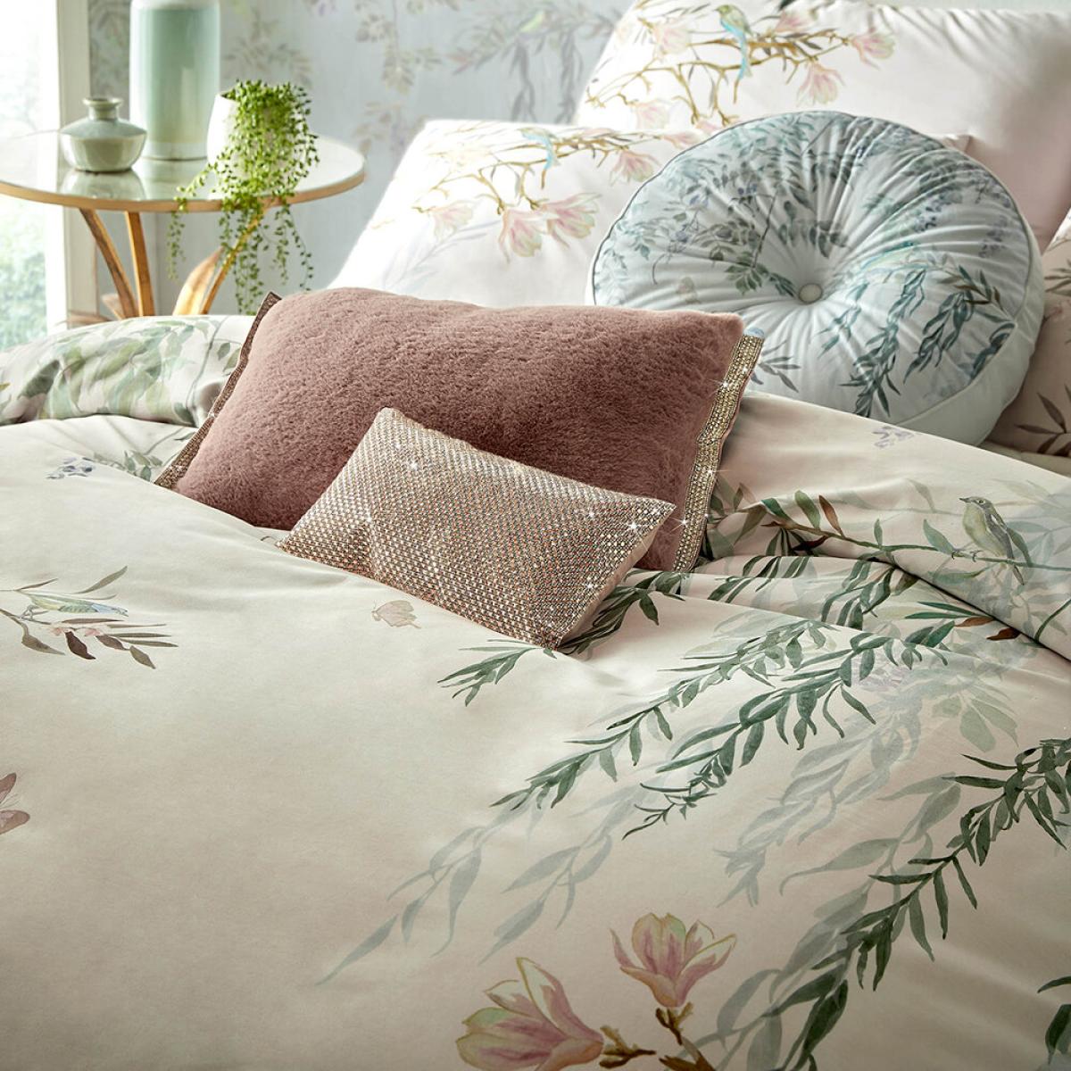 Add a pretty touch to your bedroom with this Ortenesia duvet cover from Rita Ora Home. Made from cotton sateen, this duvet cover features birds sitting on branches against a white backdrop. Pair with matching accessories from Rita Ora Home to complete the look. Key features: * Super king duvet cover * Material: 100% cotton sateen * Dimensions: 260x220cm * 220 thread count * Birds sitting on branches * Matching accessories available separately