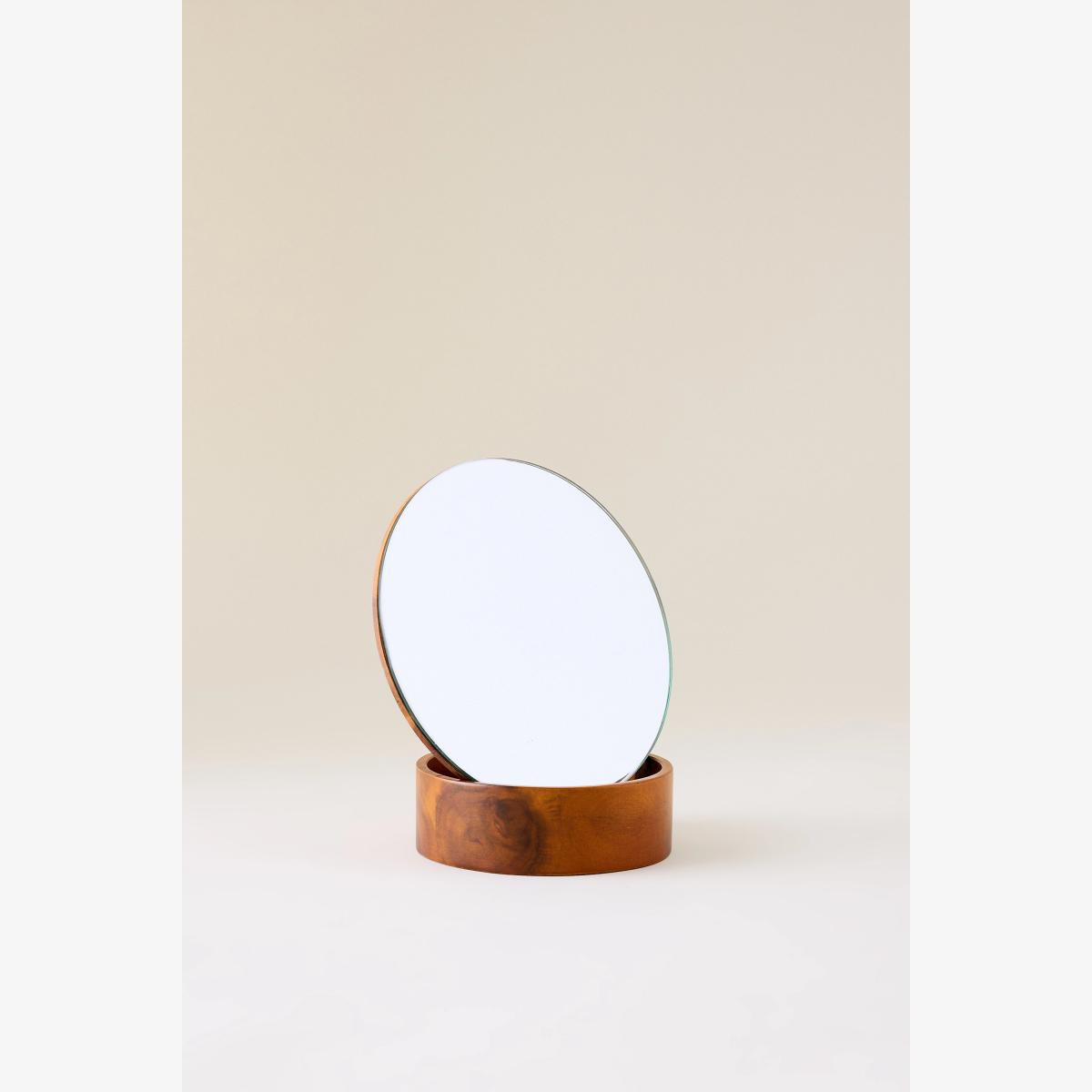 This stunning table mirror features an acacia wood bowl, perfect for storing trinkets and treasures, and it's minimalist design complements any interior. * Glass, Acacia Wood * Small bowl for extra storage * Imported