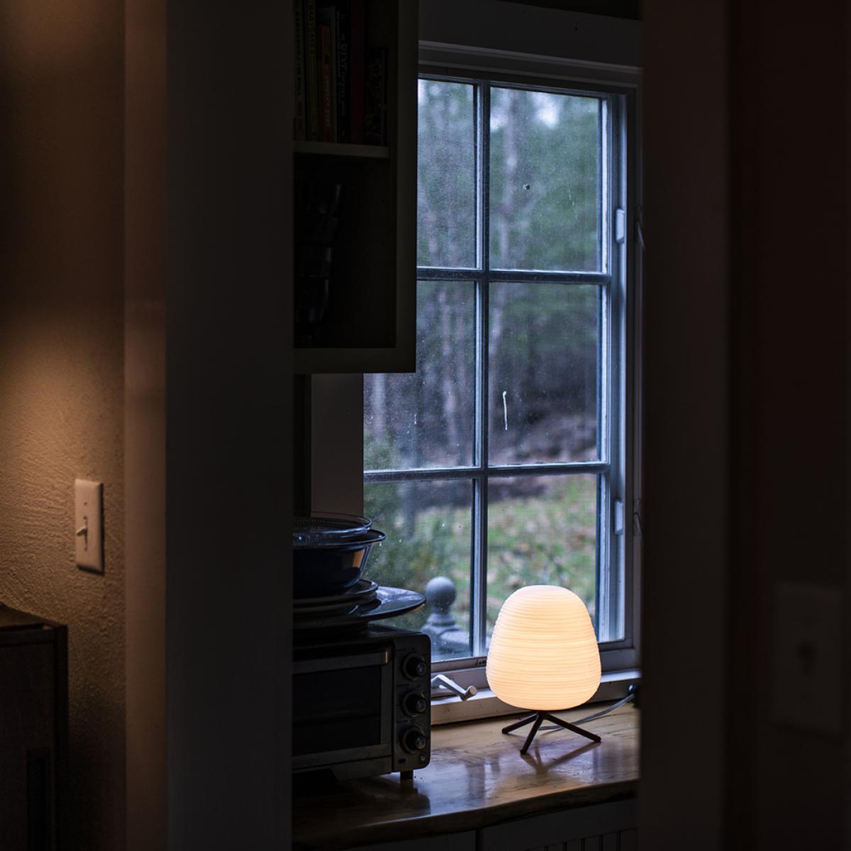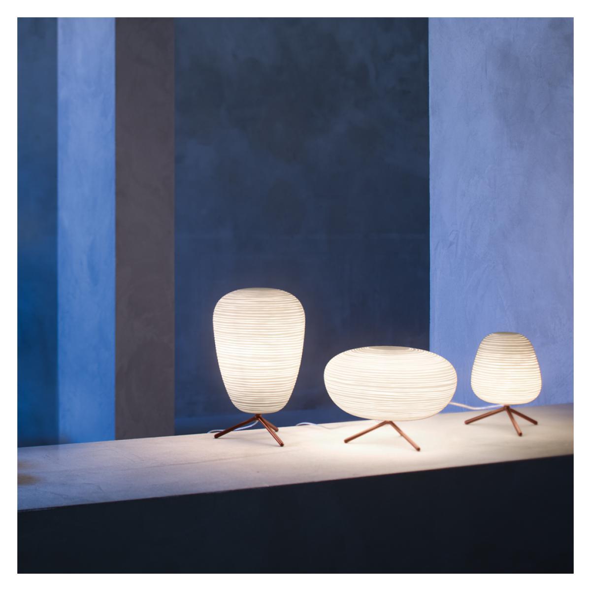 Gently illuminate your space with a calming emanation from the Rituals 3 Table Lamp, designed by Ludovica and Roberto Palomba for Foscarini. Inspired by traditional Japanese lanterns, the Rituals 3 Table Lamp is crafted from hand-blown engraved satin glass in an opal finish, conveying the delicate texture of rice paper that characterises the traditional lantern. Crafted with horizontal lines cut across the width of the shade, the light from the Rituals 3 Table Lamp is dimmable and diffuses to an ambient glow through its frosted glass surround, which makes this table lamp perfect for accentuating a room or creating a calming atmosphere for relaxation or meditation. The clean, minimalist Rituals 3 Table Lamp is elevated on a coated metal tripod stand, making it suitable for tables and surfaces of all kinds. The ultimate way of illuminating a space subtly and stylishly, this table lamp is a perfect combination of traditional design and modern materials. Designed by Ludovica and Roberto Palomba, the design duo is well-known for receiving renowned awards such as Compasso D’Oro, Red Dot and ELLE Decoration International. Requires 1 x E27 dimmable LED bulb (not included).