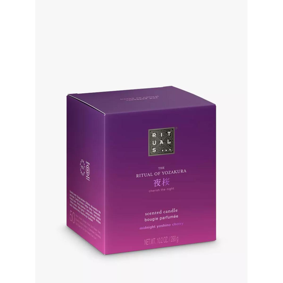 Create an inviting atmosphere at home with the beautifully designed Limited edition scented candle. This creation mixes sensual white flowers with the ambery gourmand aspects of vanilla and almond milk for a nourishing and rich scent experience. Subtle fruity notes sparkle in the top layer for an intense experience and fill any room with a perfectly atmospheric scent. The Ritual of Yozakura scented candle lasts up to 50 hours. Combine the candle with the matching fragrance sticks for a more intense experience. How to use: Let the candle burn for at least 3-4 hours for the first time to melt the top layer for an even burn. Meditation tip: Focus on the flickering flame and allow this single image to occupy your mind. Imagine you're inhaling and exhaling the candlelight.